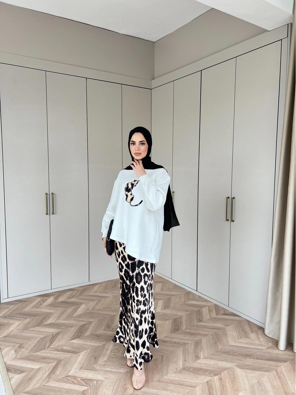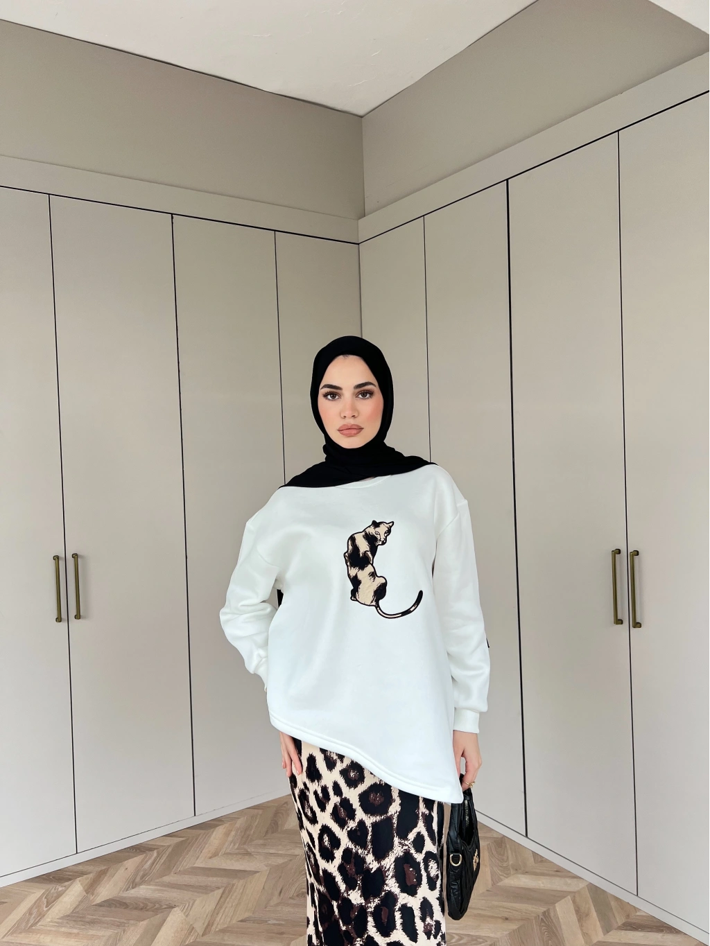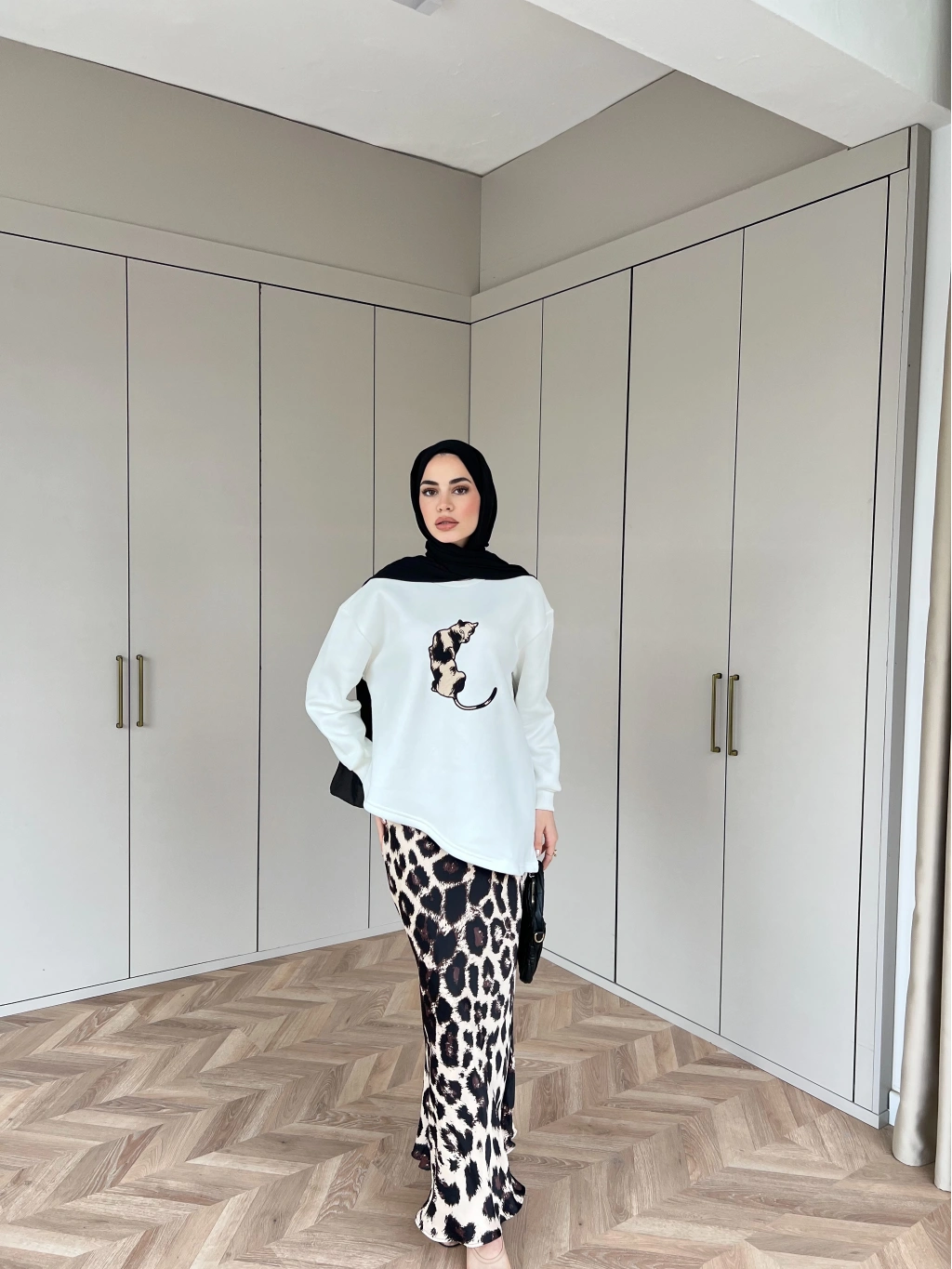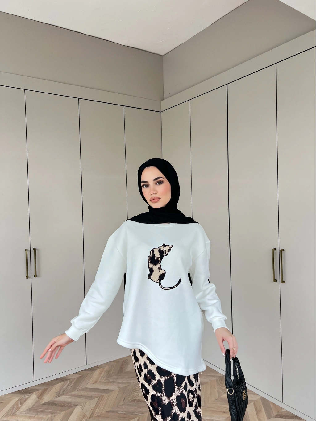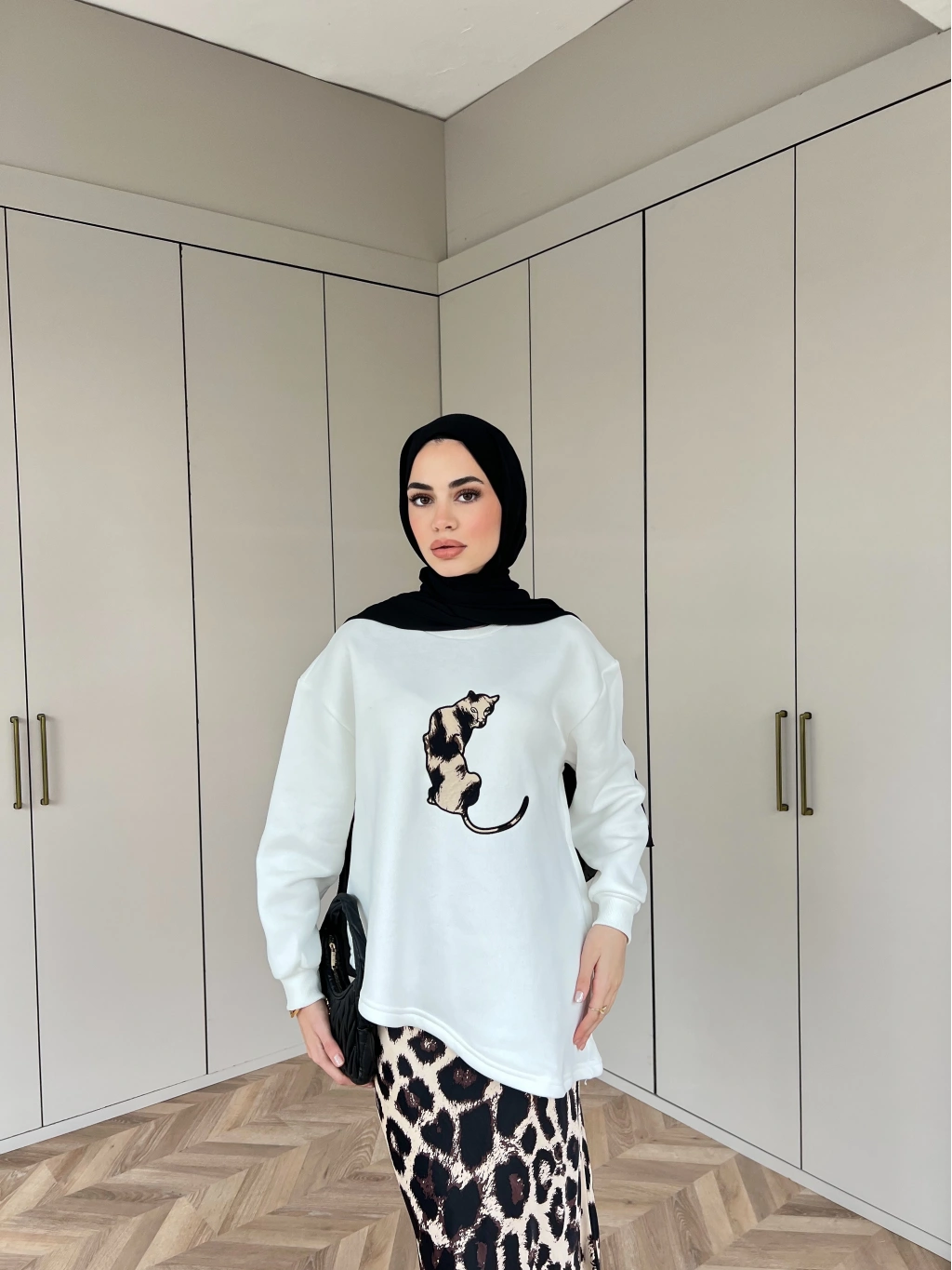 Asude Leopar Detaylı Takım - Beyaz