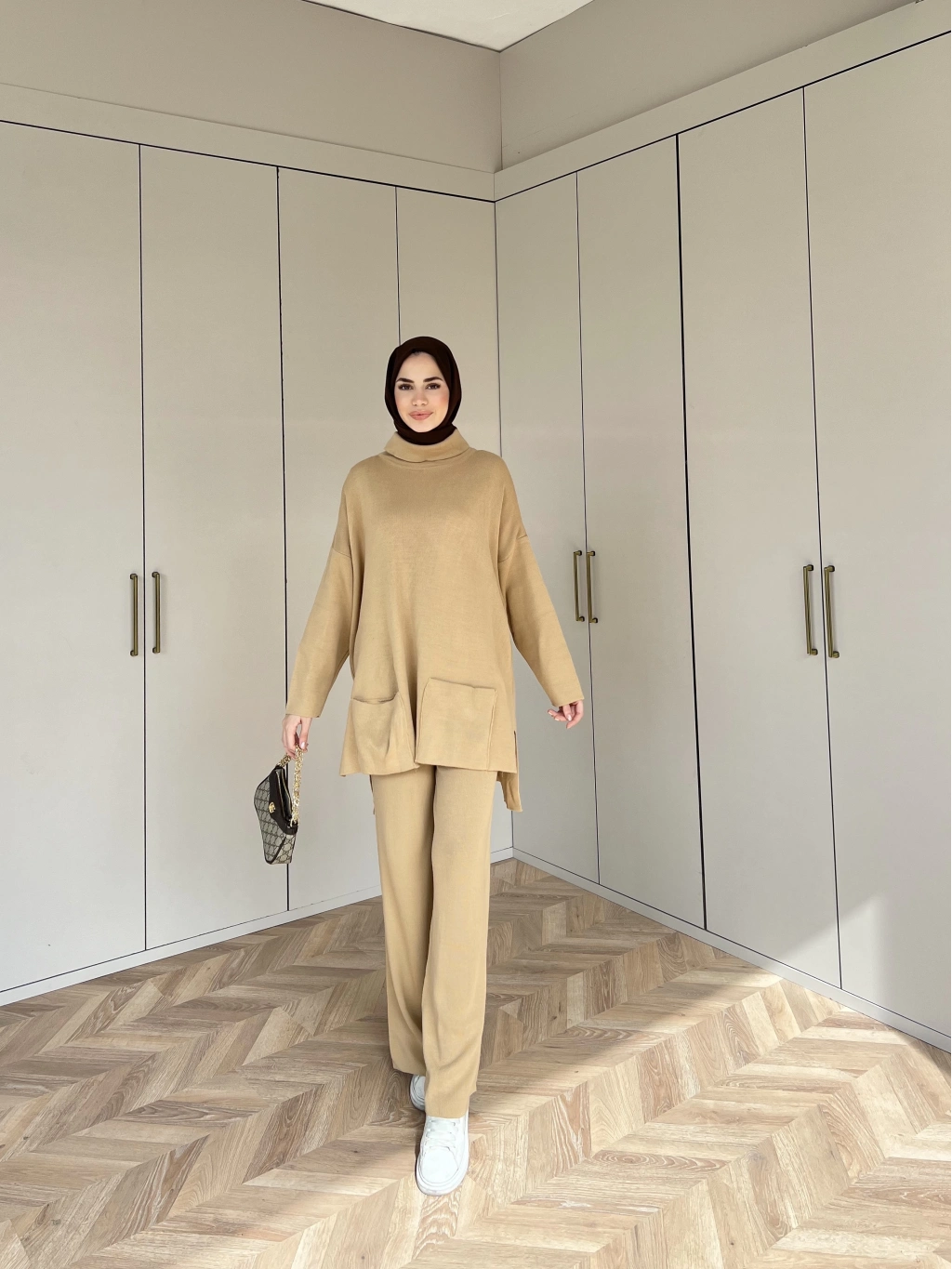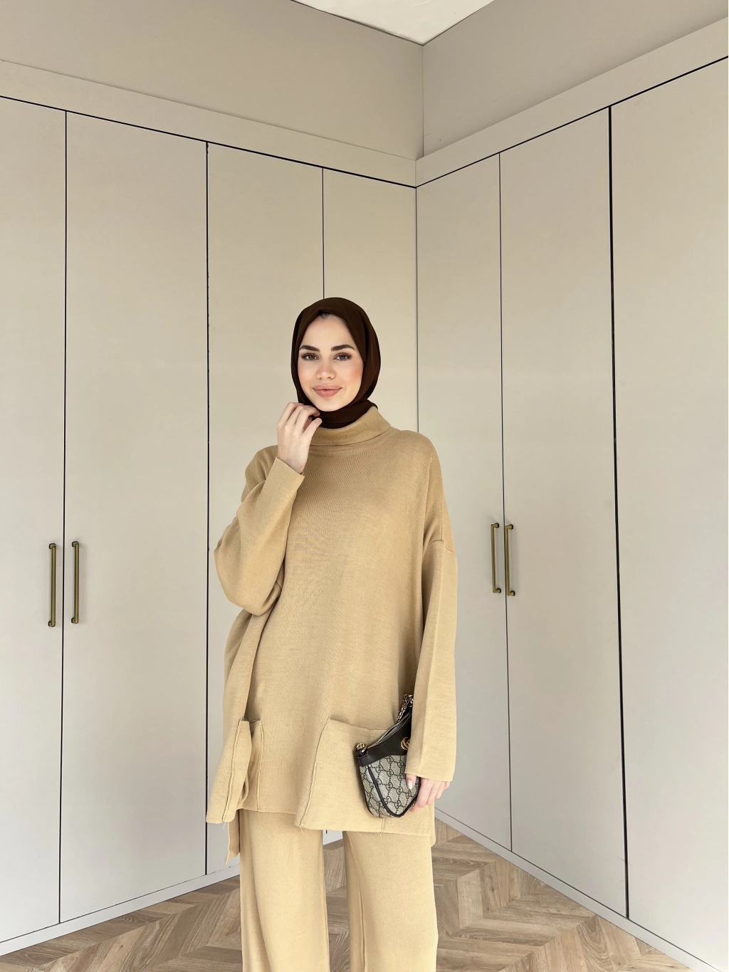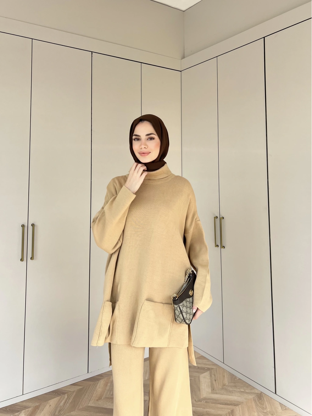 Cep Detaylı Triko Takım - Camel