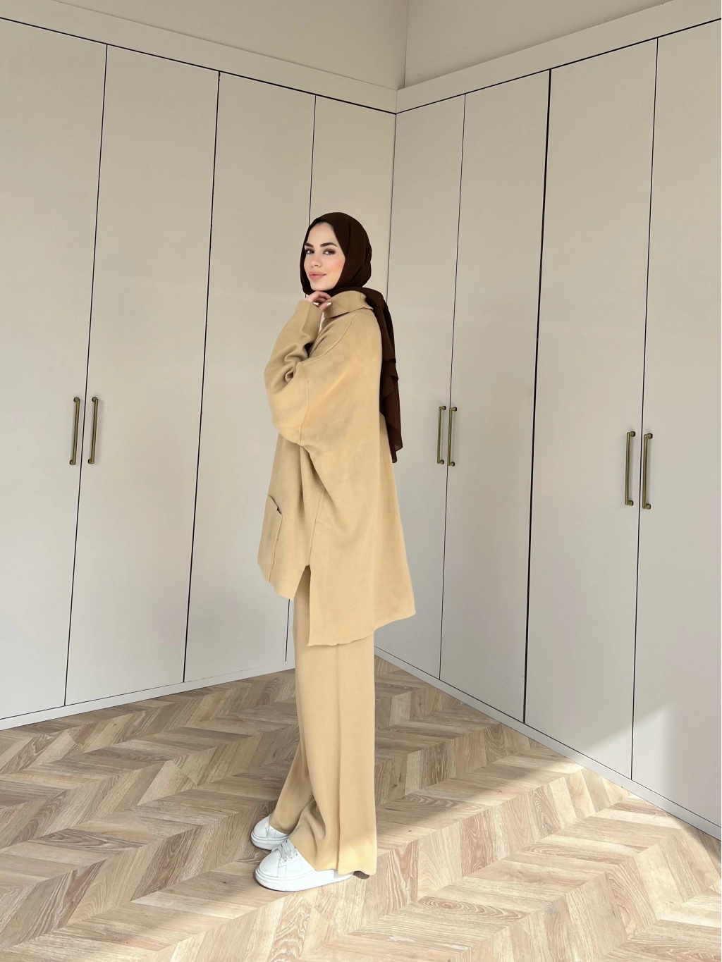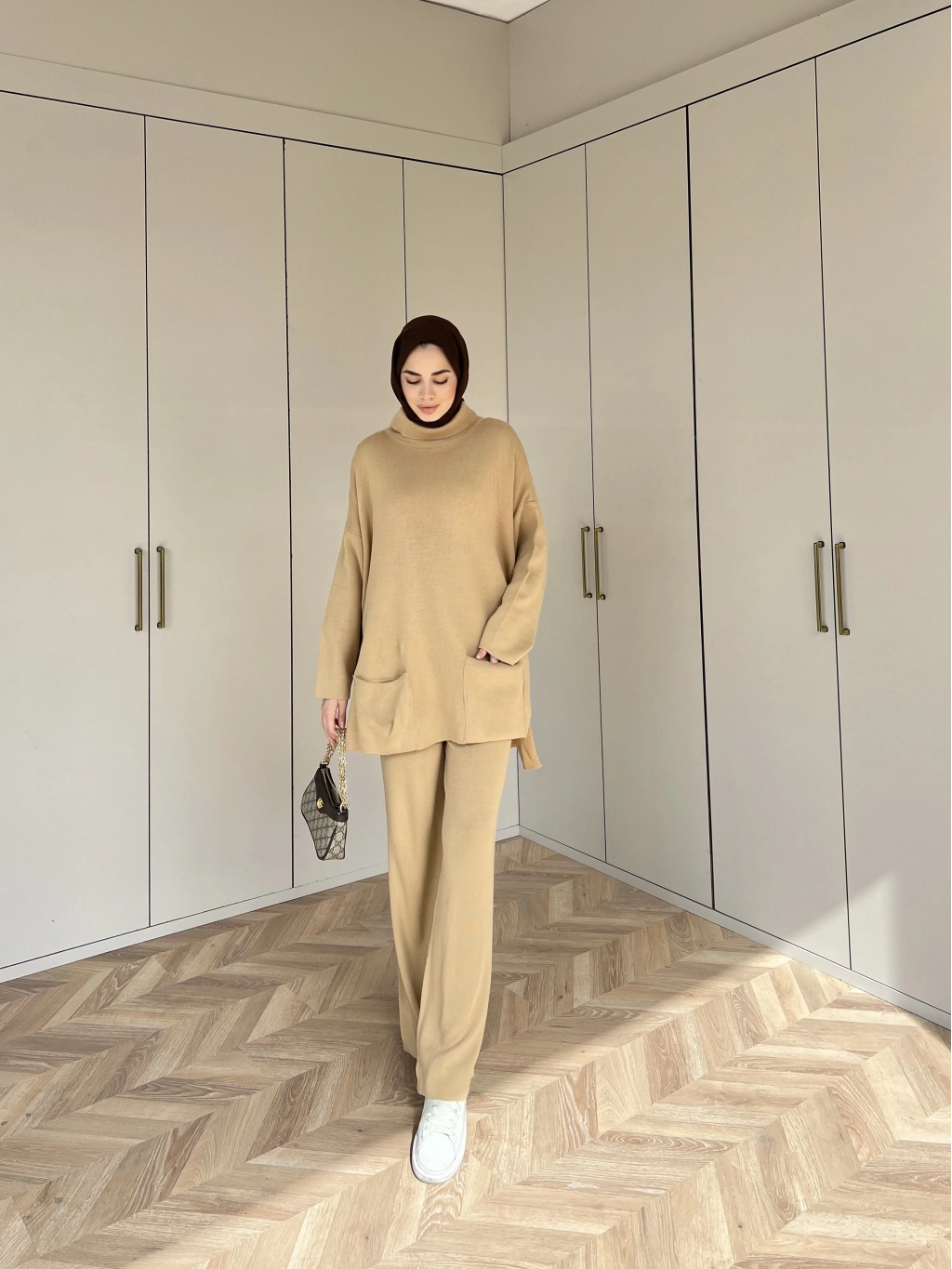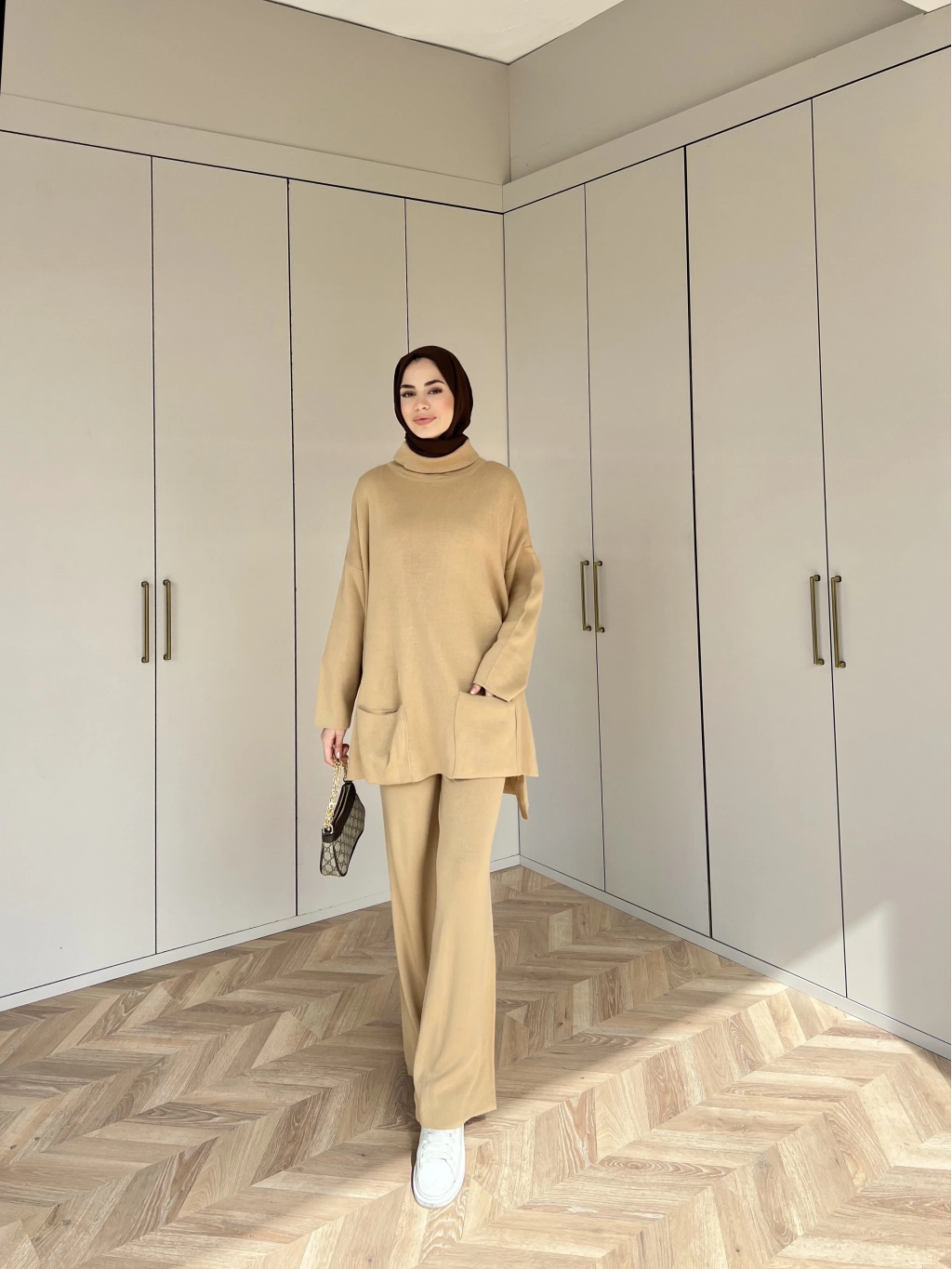 Cep Detaylı Triko Takım - Camel