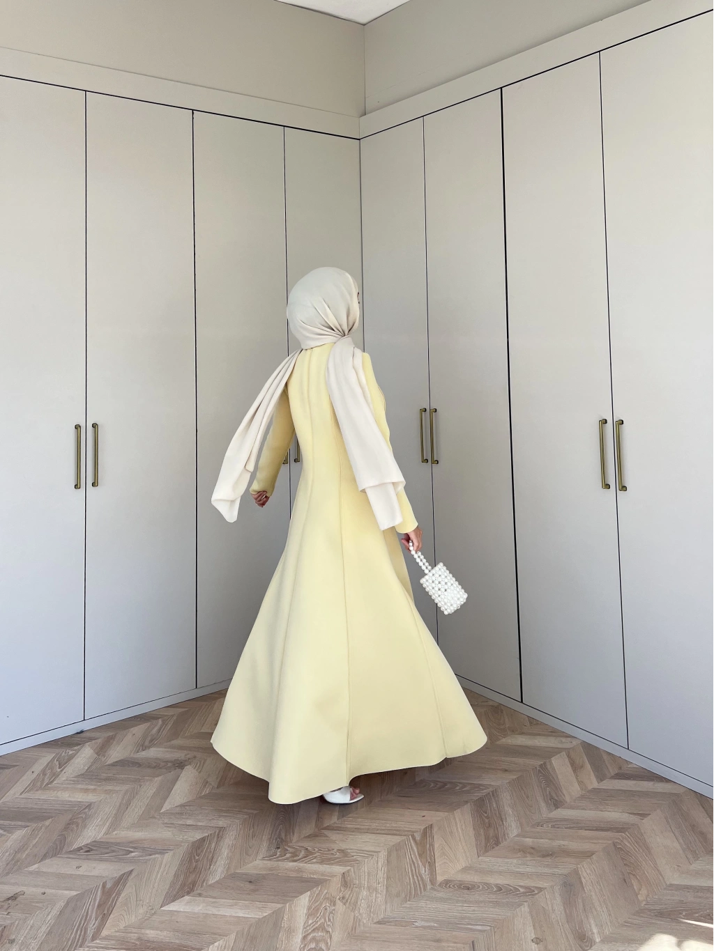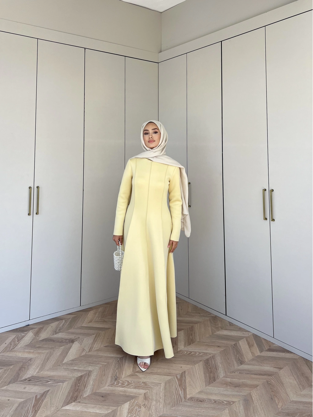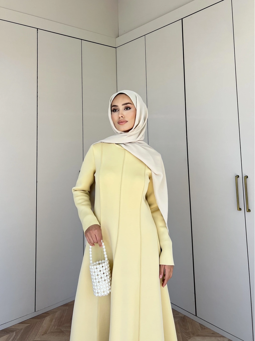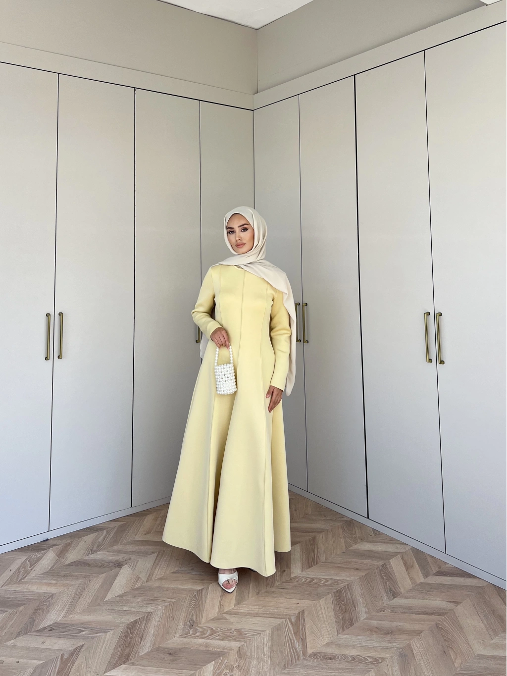Selvi Deri Elbise - Krem