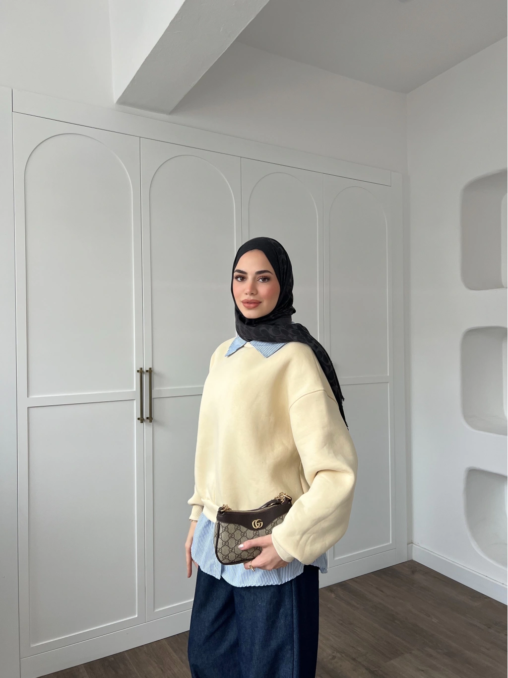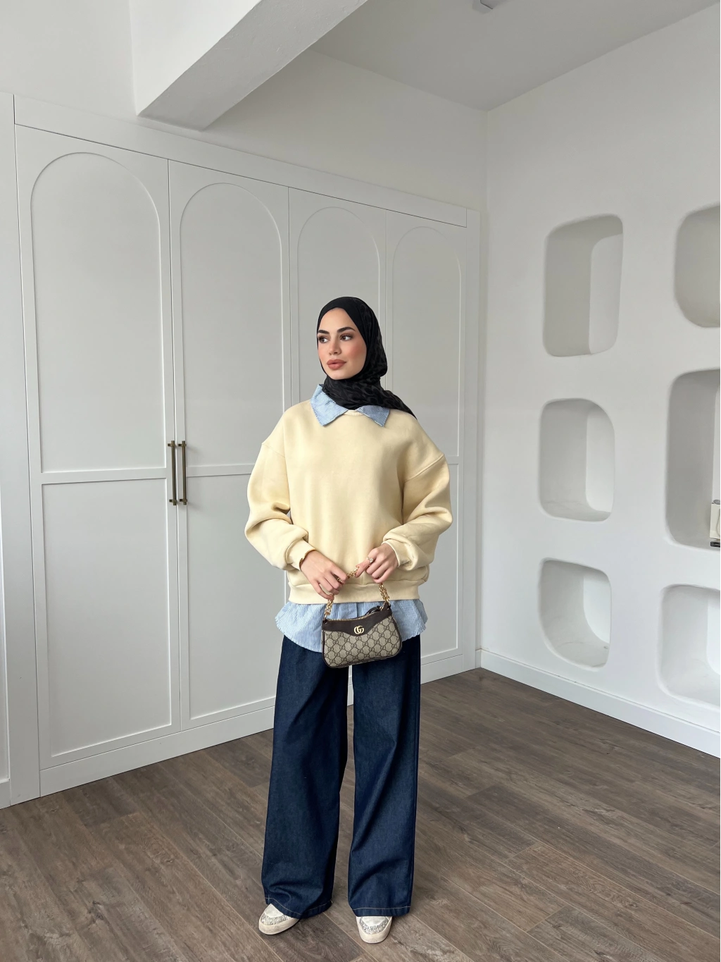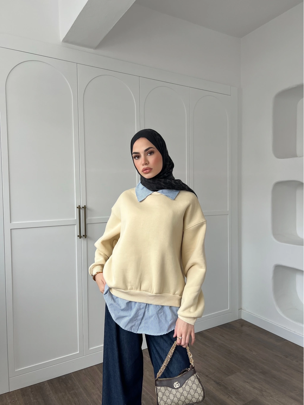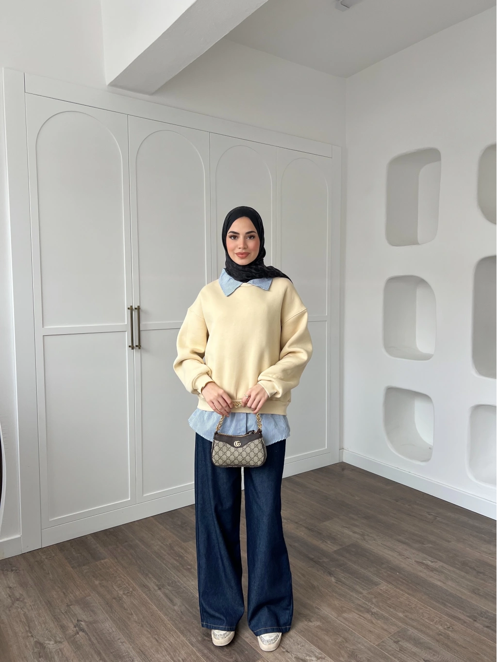 Gömlek Detaylı 3 İplik Sweat - Krem