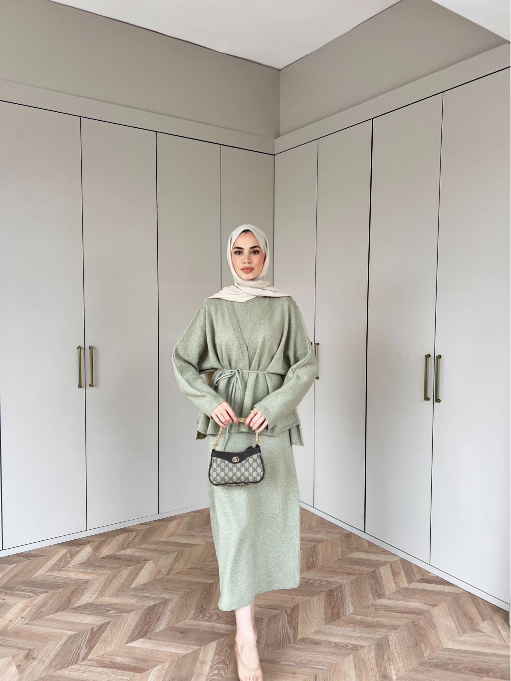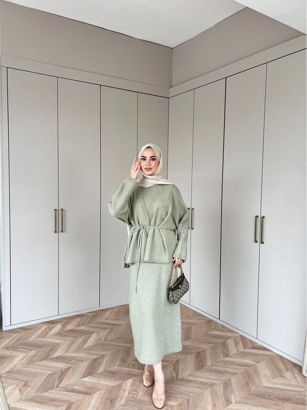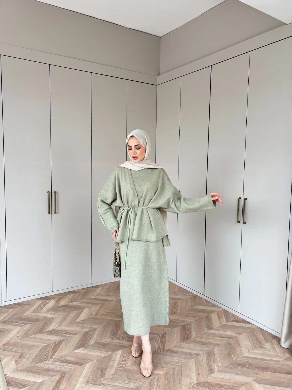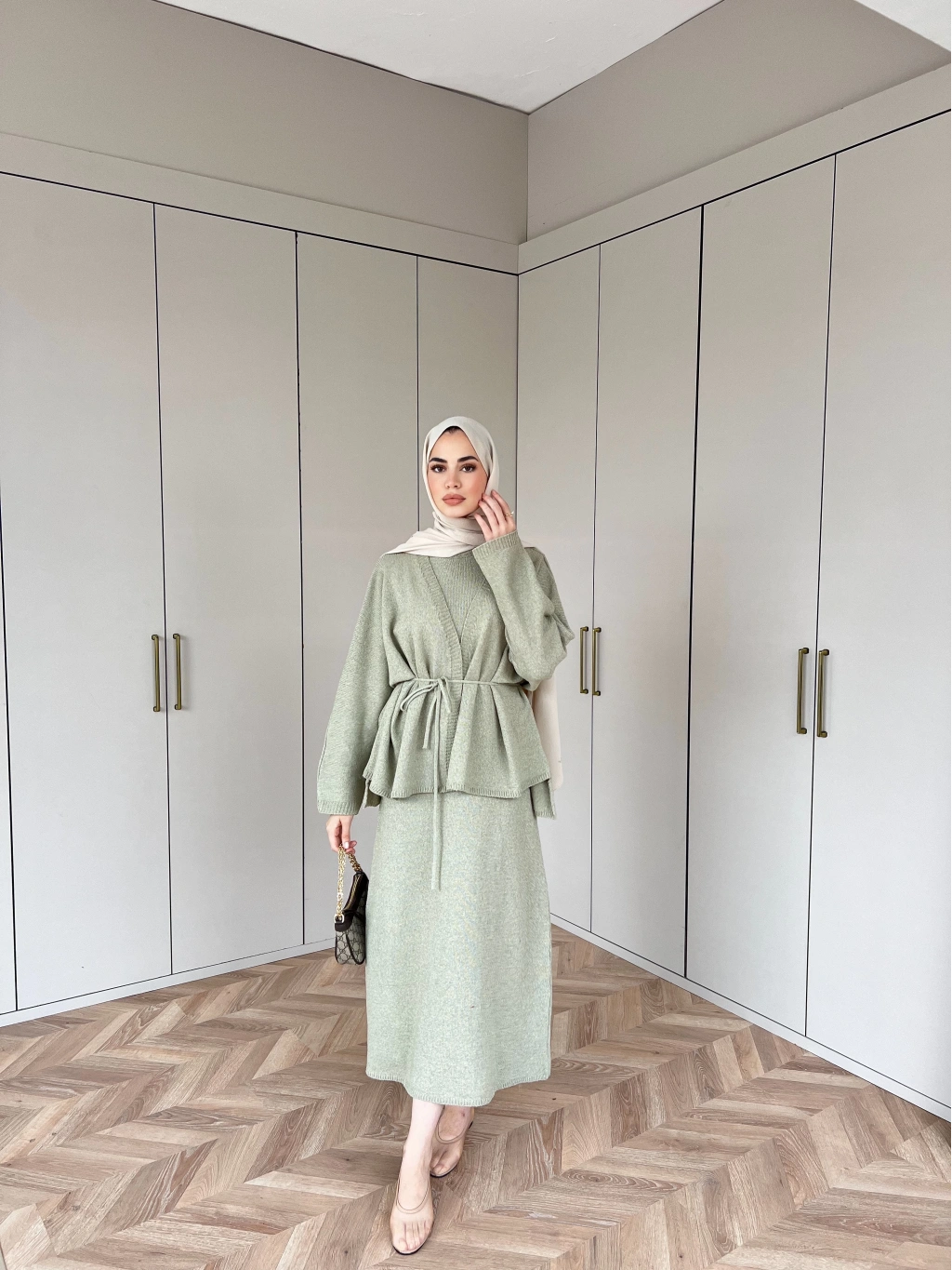 Hırkalı Triko Elbise - Çağla
