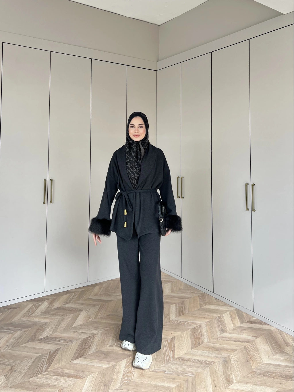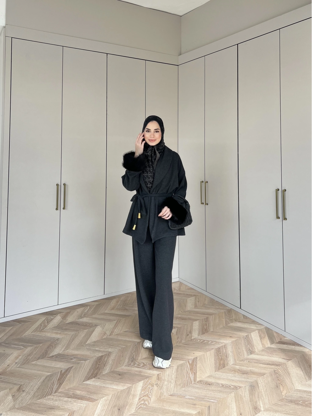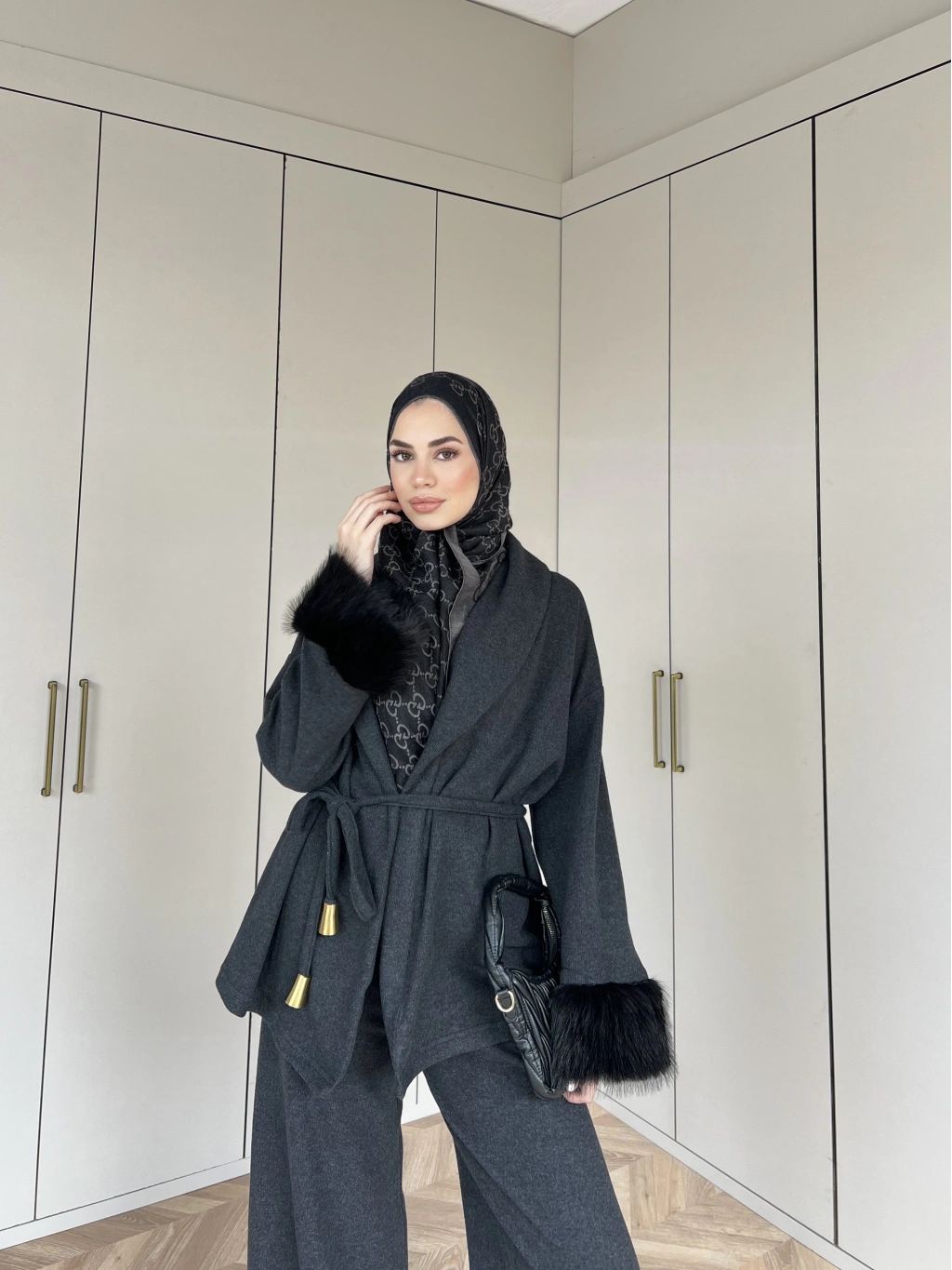 Hüma Kol Detayı Kürk Takım - Antrasit