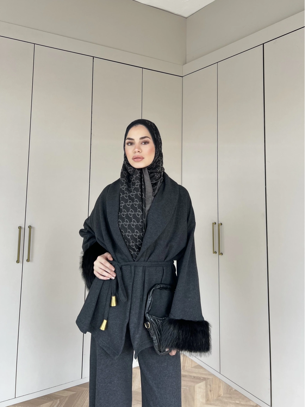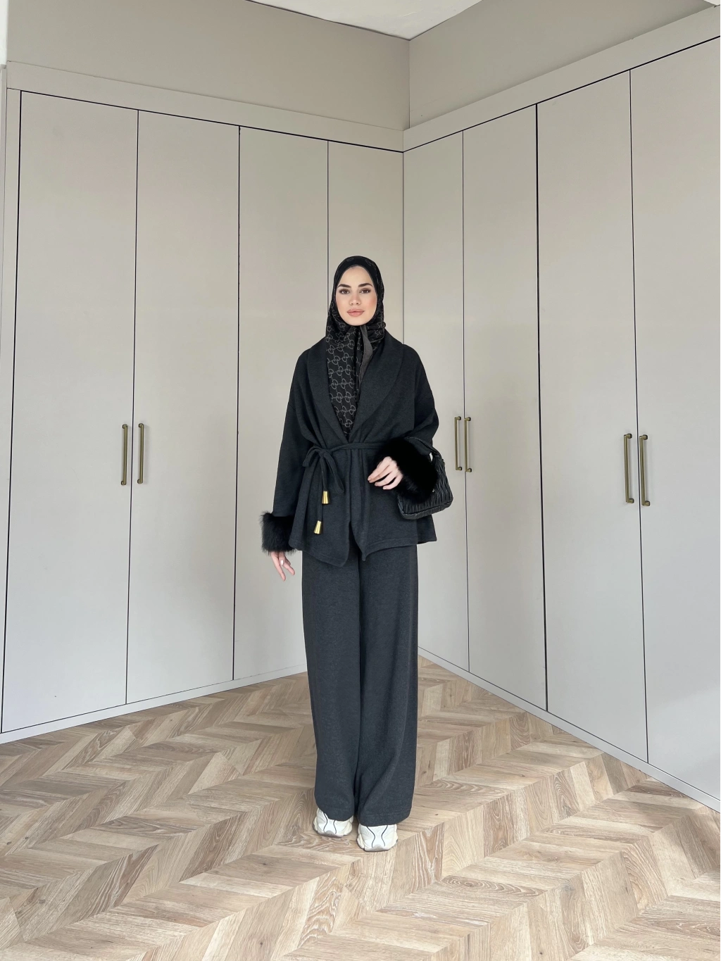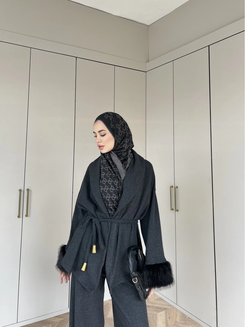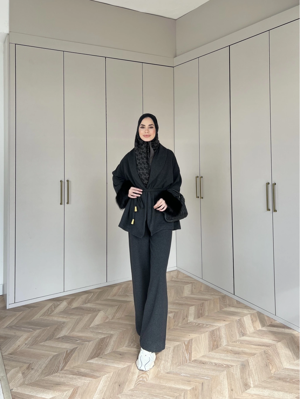 Hüma Kol Detayı Kürk Takım - Antrasit