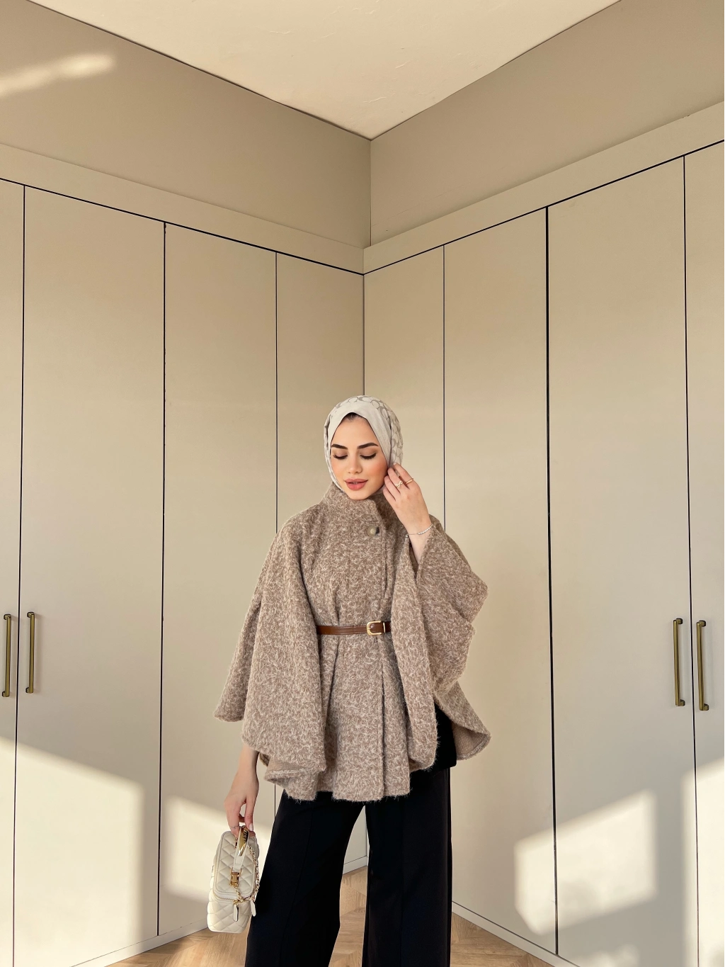 Quva Kol Detayı Kürk Takım - Kahve