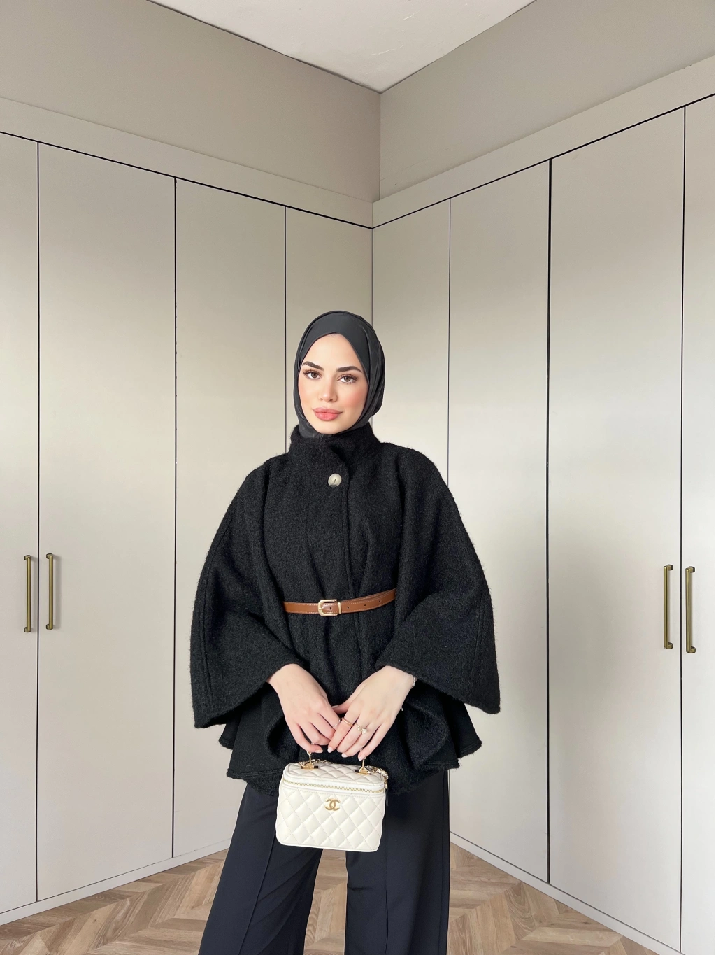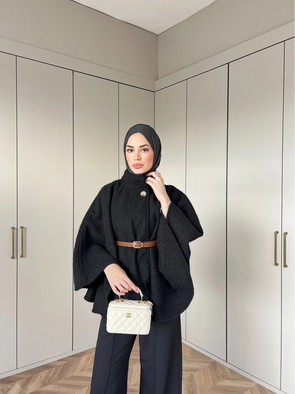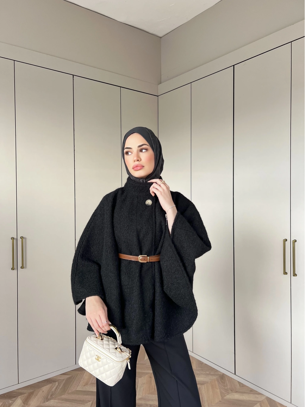Quva Kol Detayı Kürk Takım - Siyah