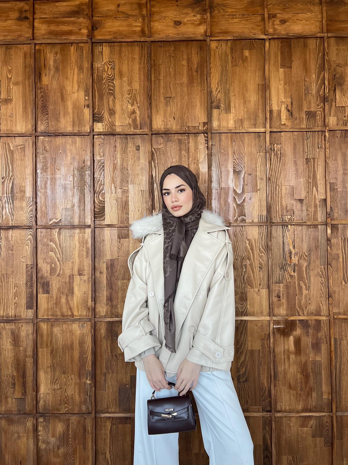 Kürk Detaylı Deri Ceket - Krem