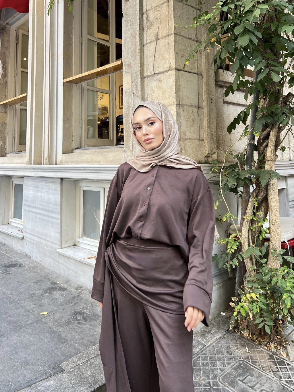 Lale Belden Geçirmeli Oysha Takım - Acı Kahve