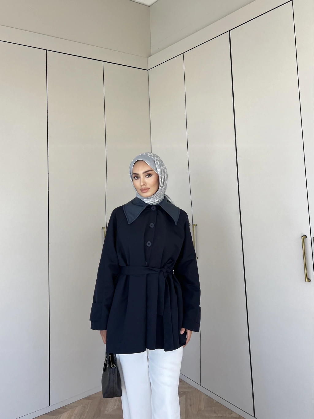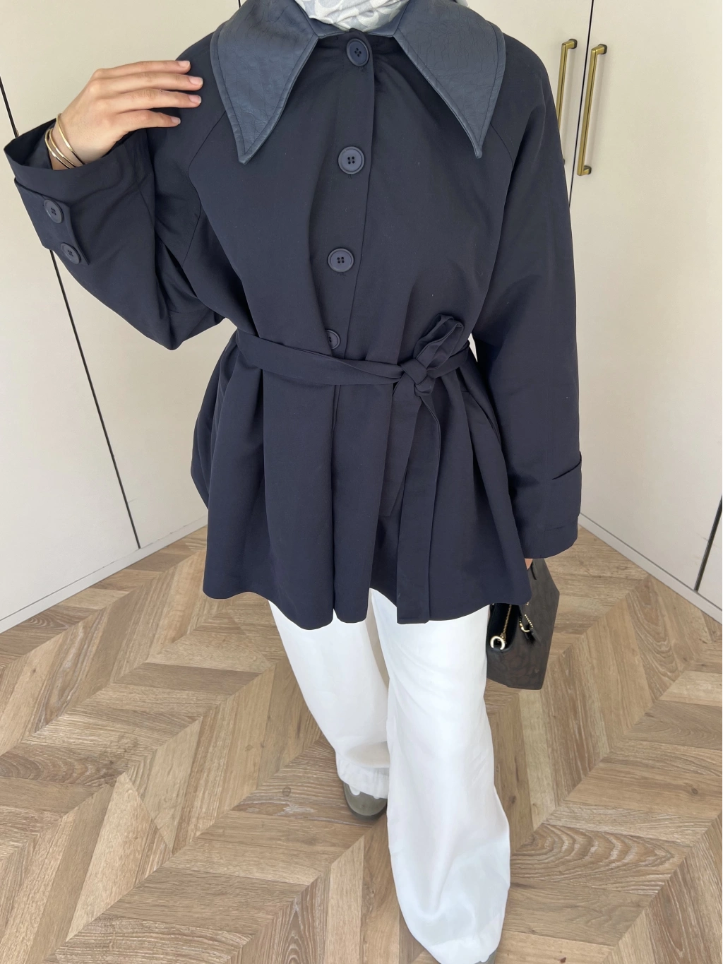 Masal Deri Detaylı Trenç (ön Sipariş)