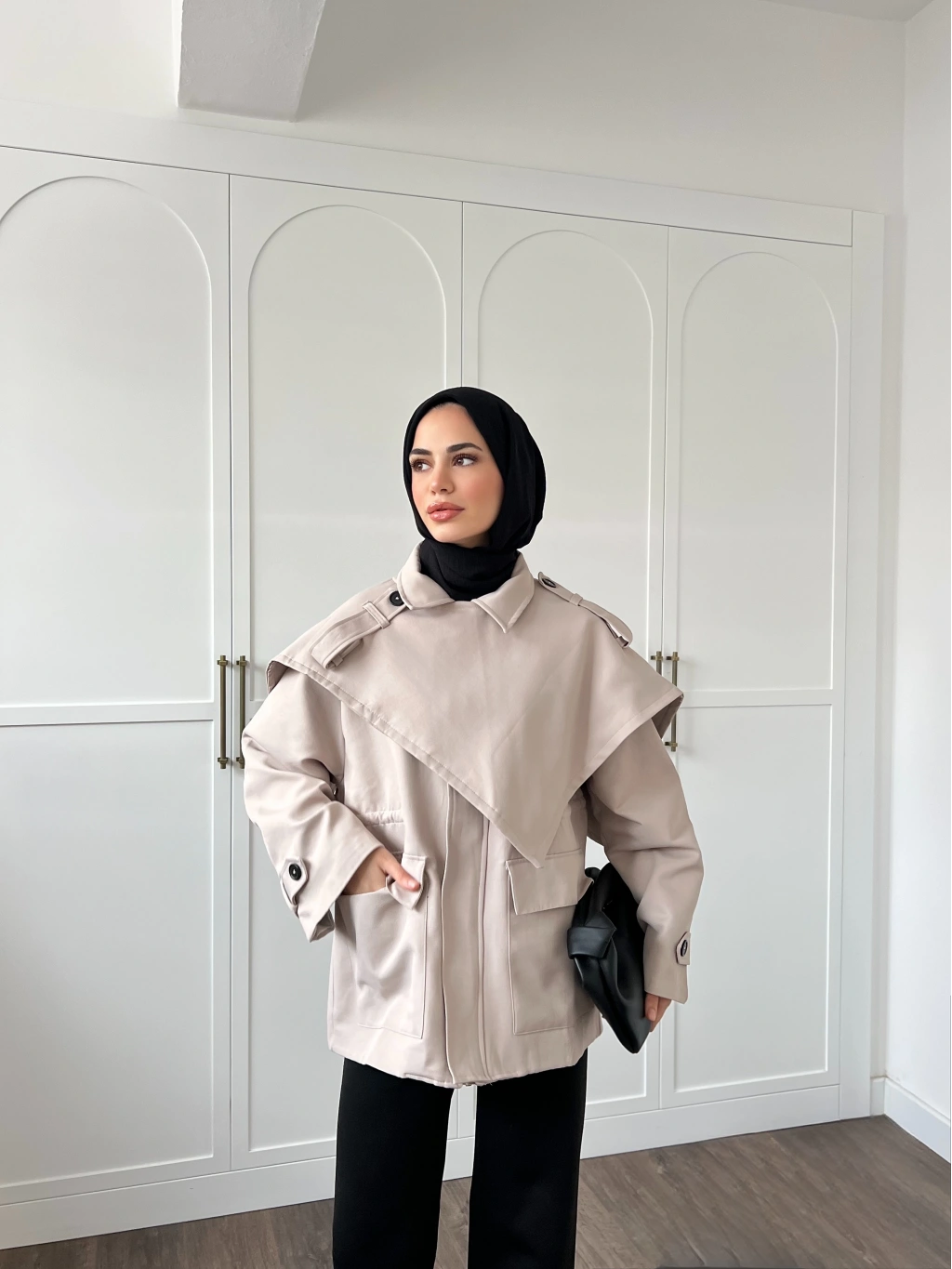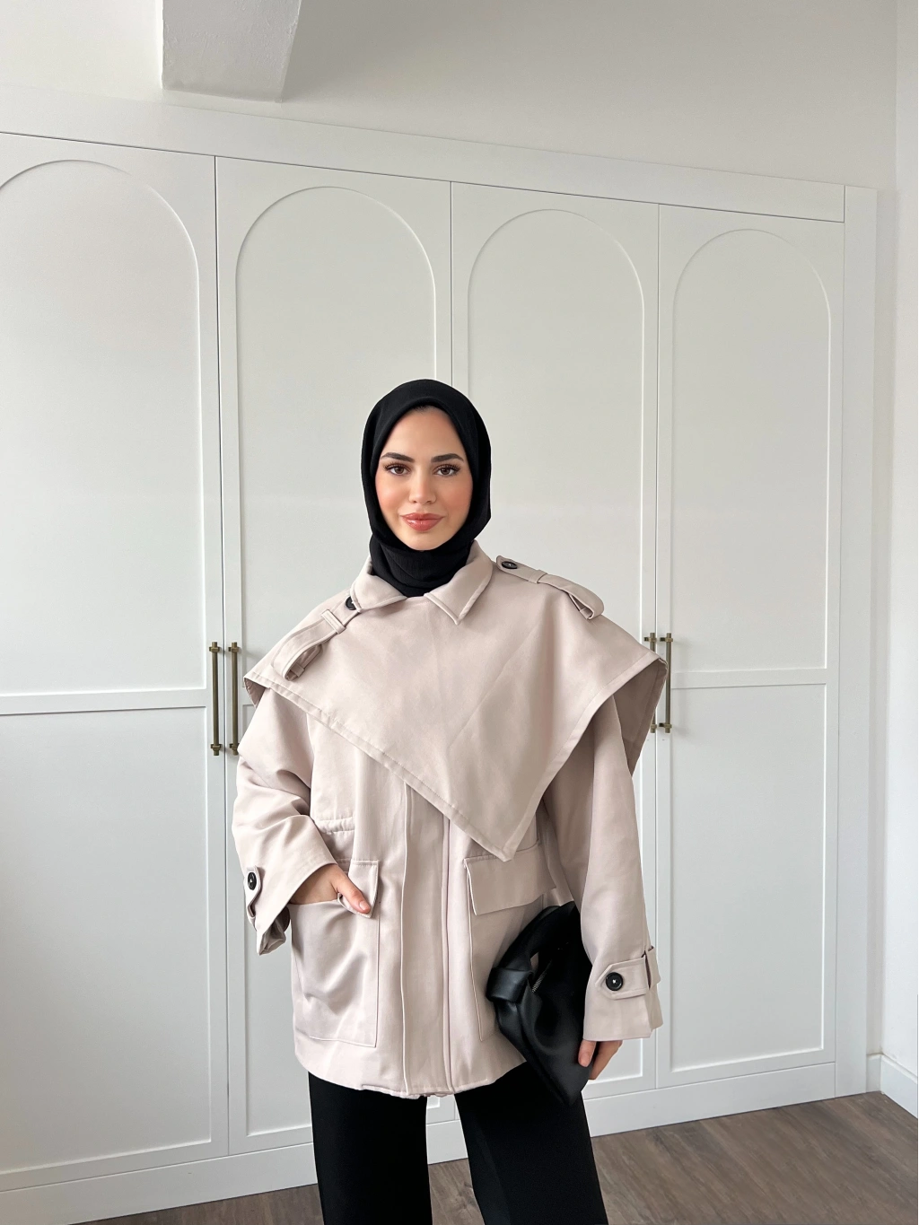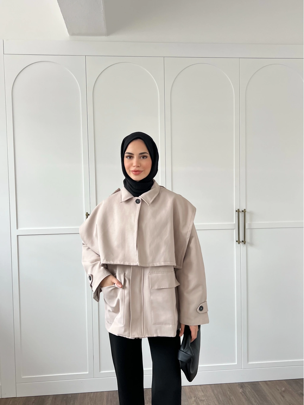 Gömlek Detaylı 3 İplik Sweat - Krem