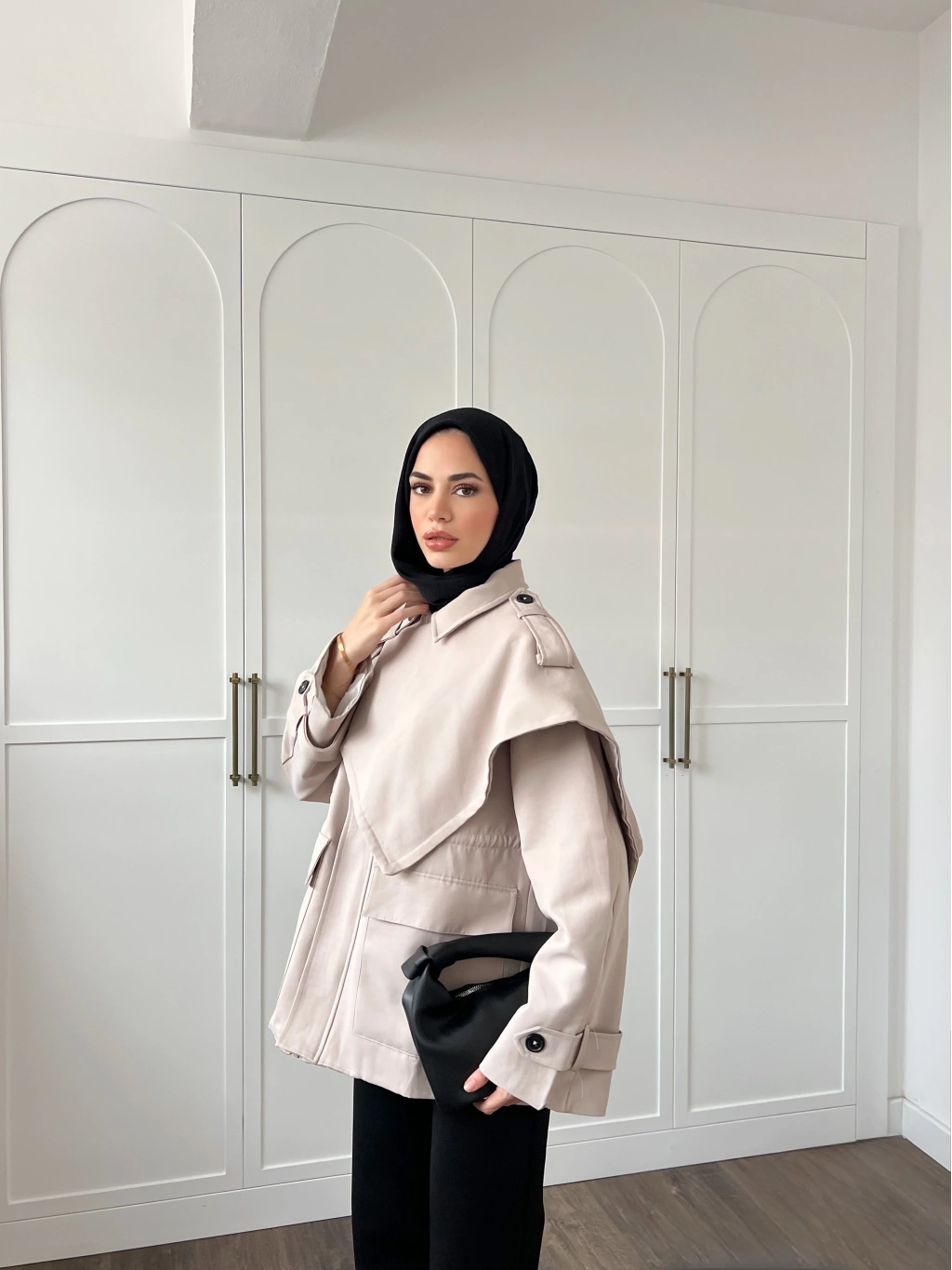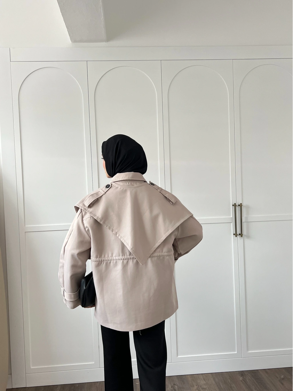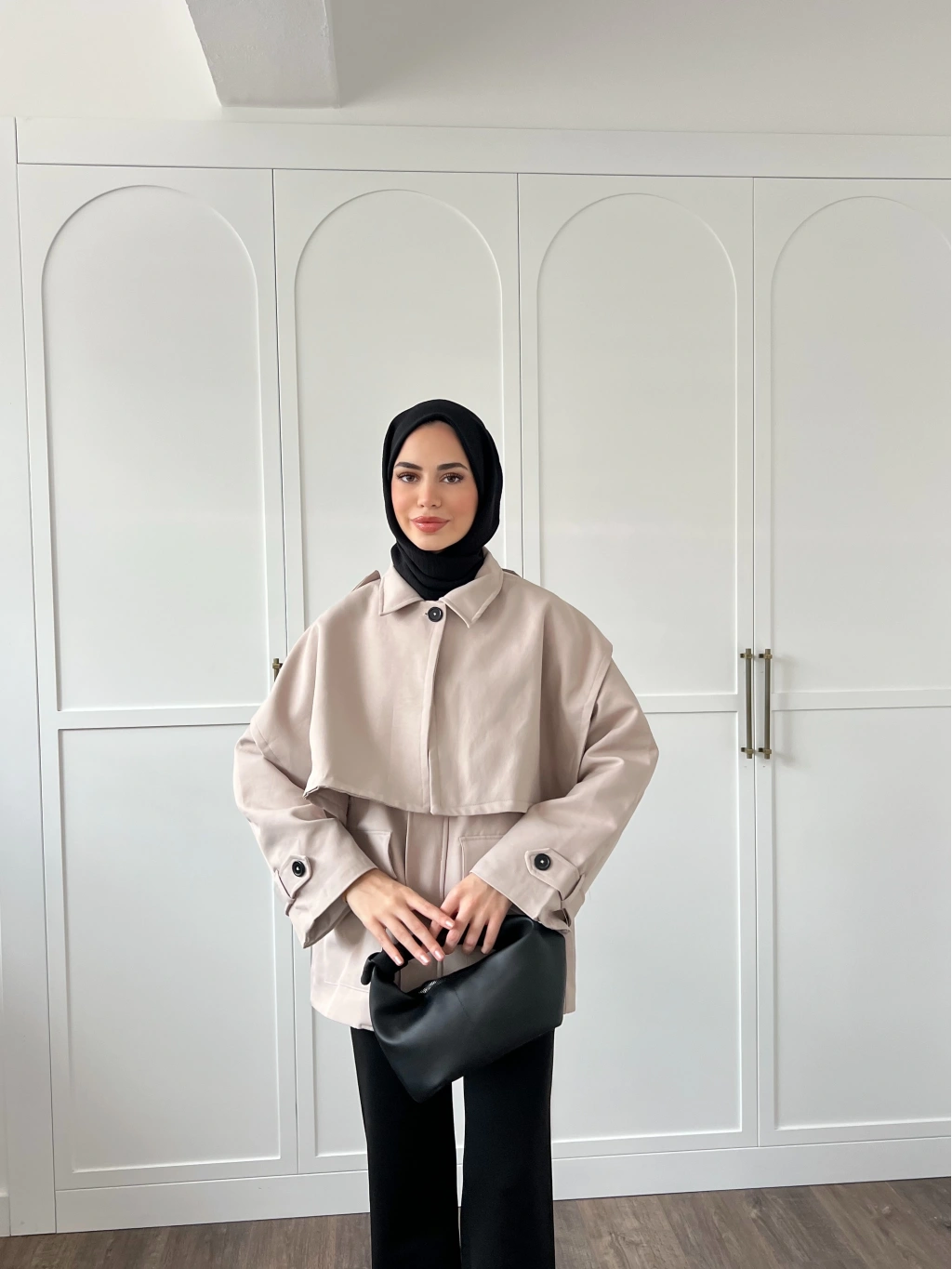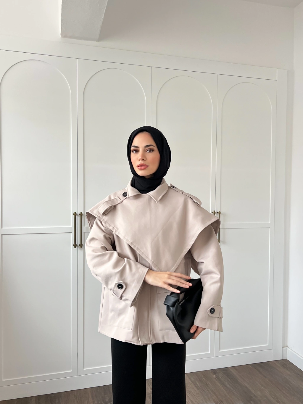 Gömlek Detaylı 3 İplik Sweat - Krem