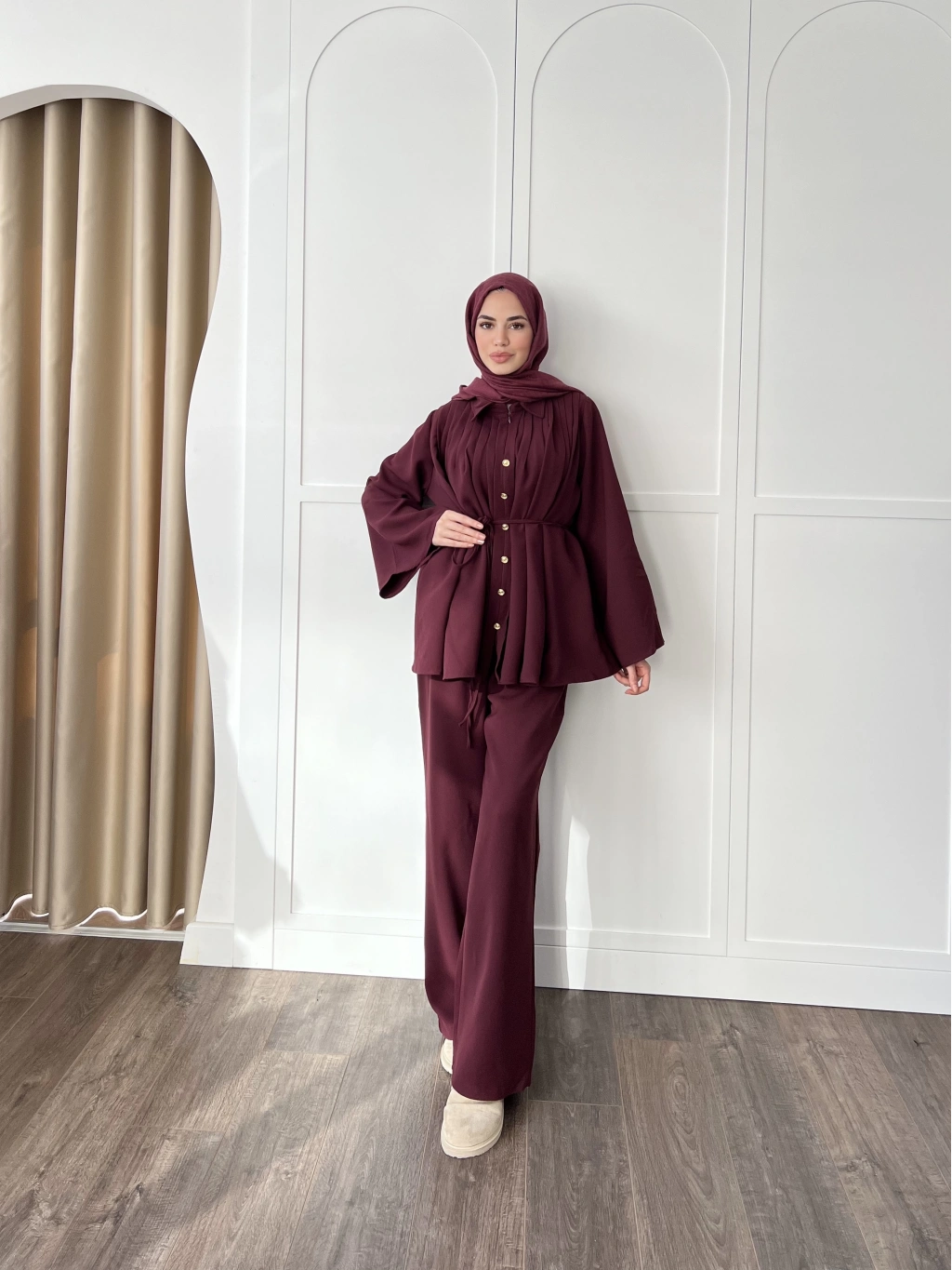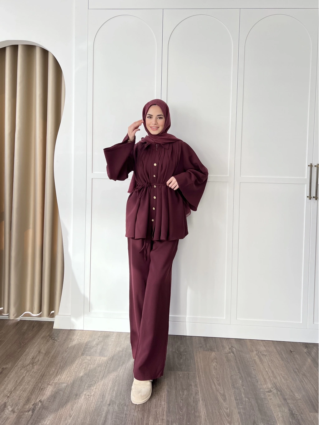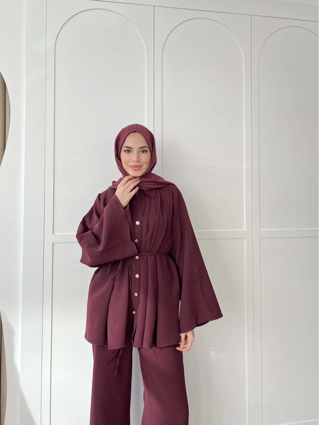 Oya Düğmeli Takım -bordo