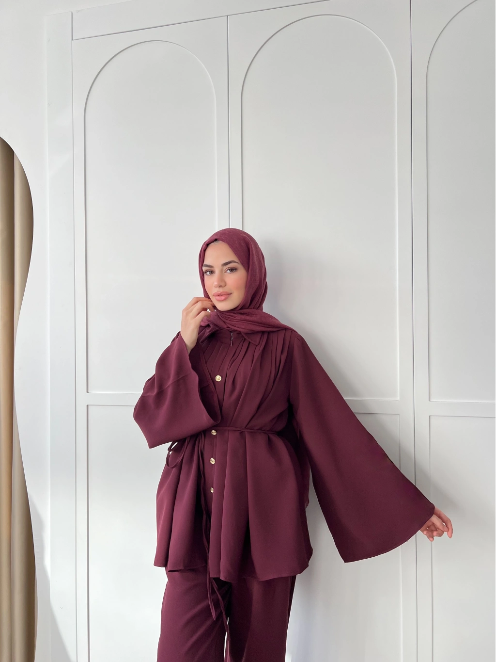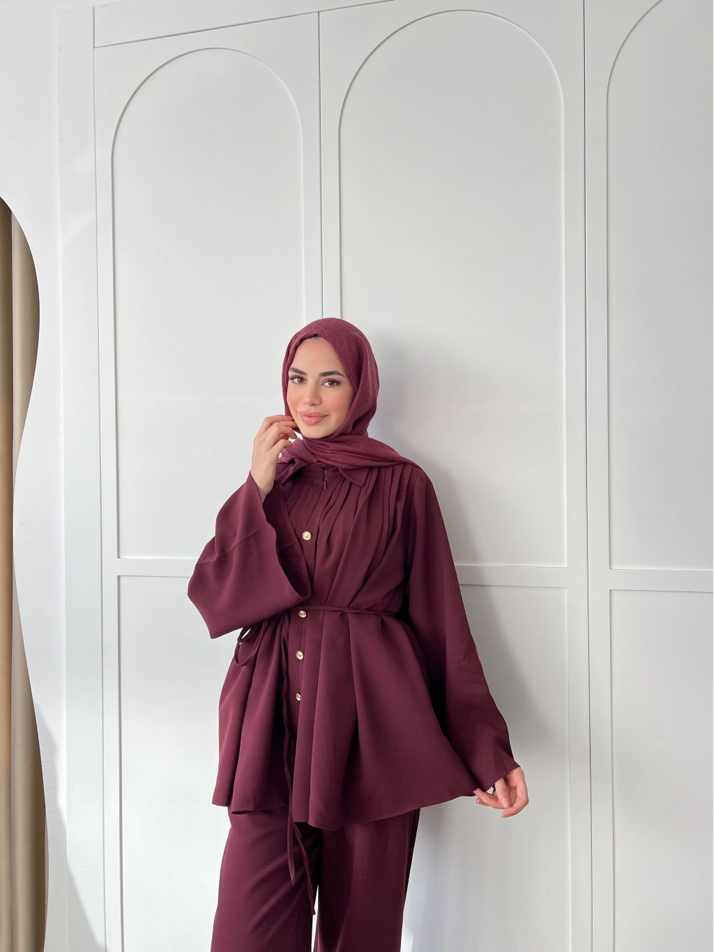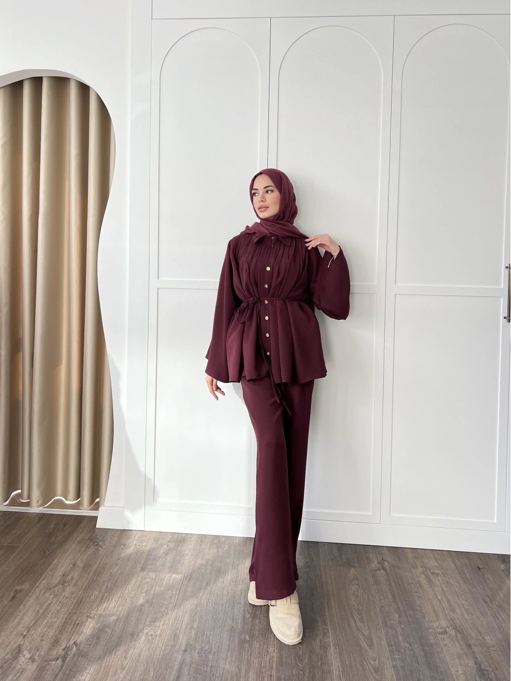 Oya Düğmeli Takım -bordo