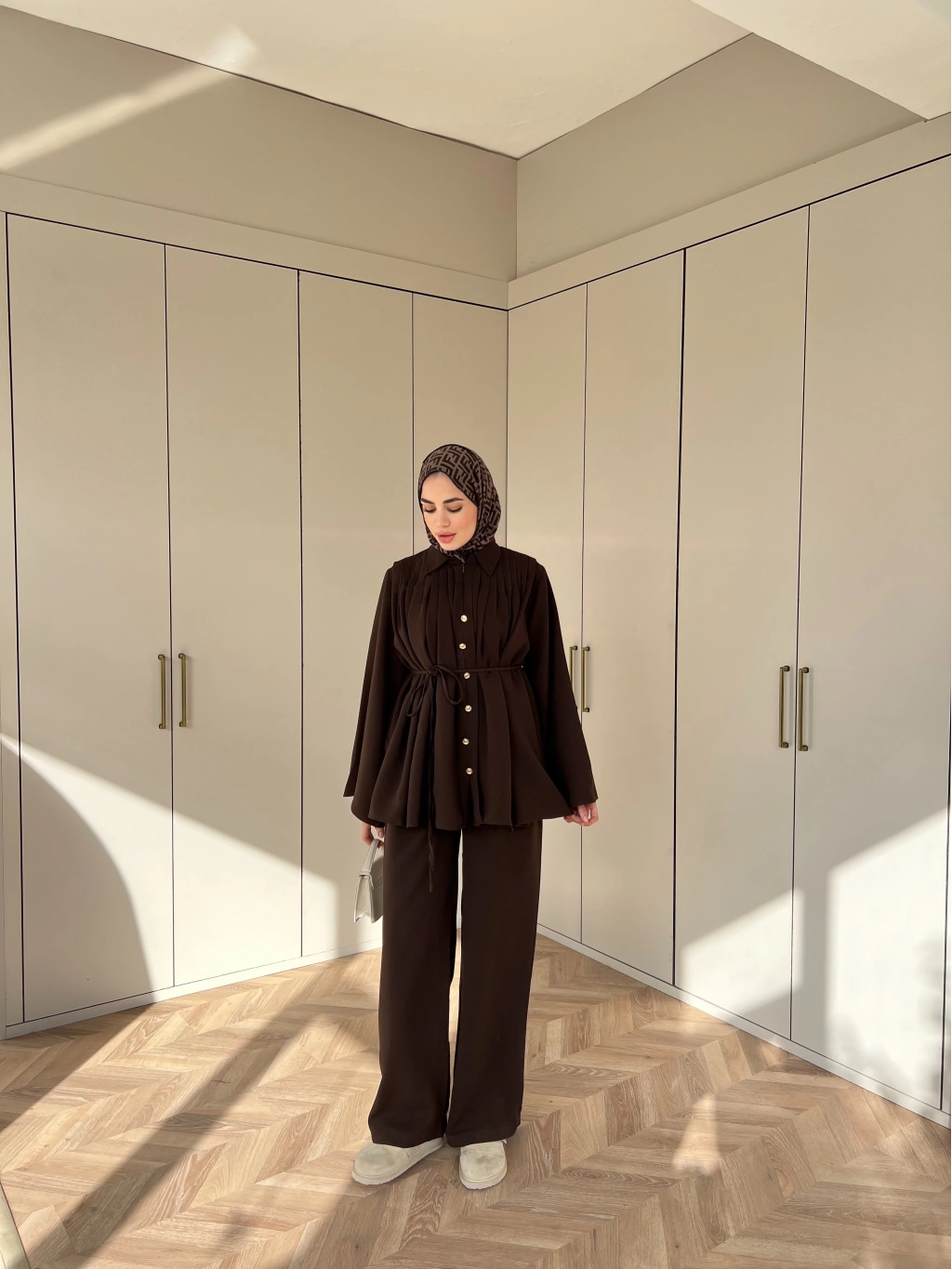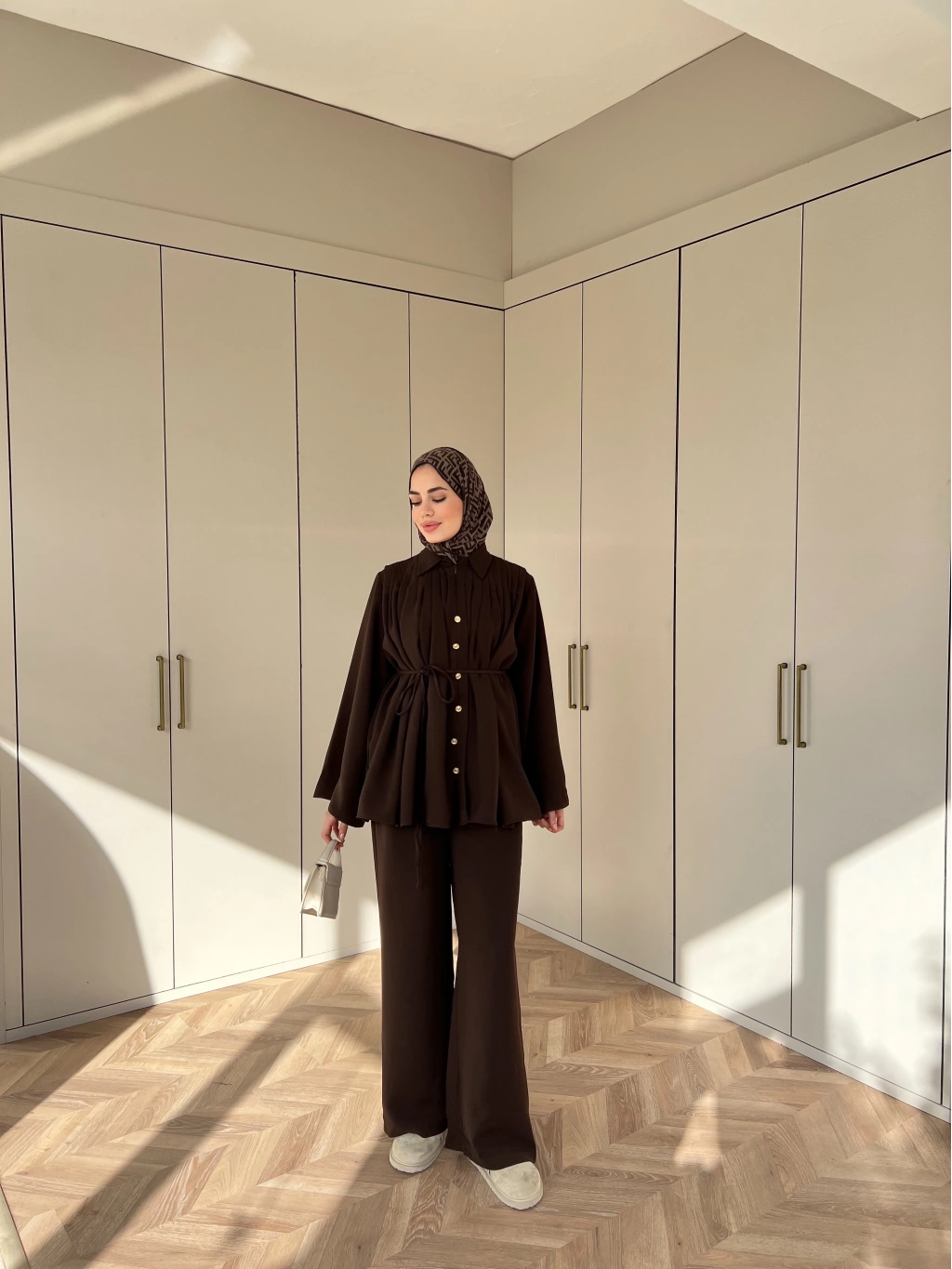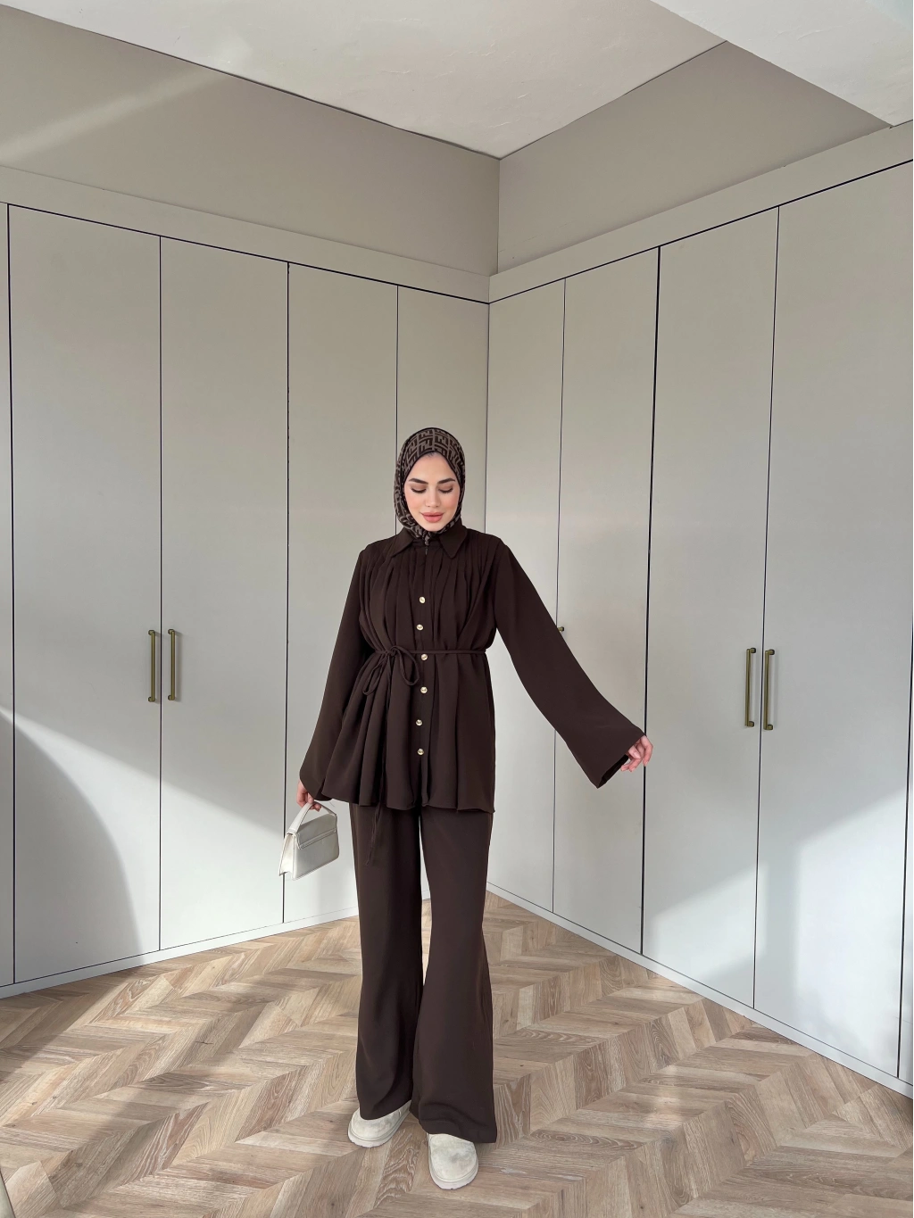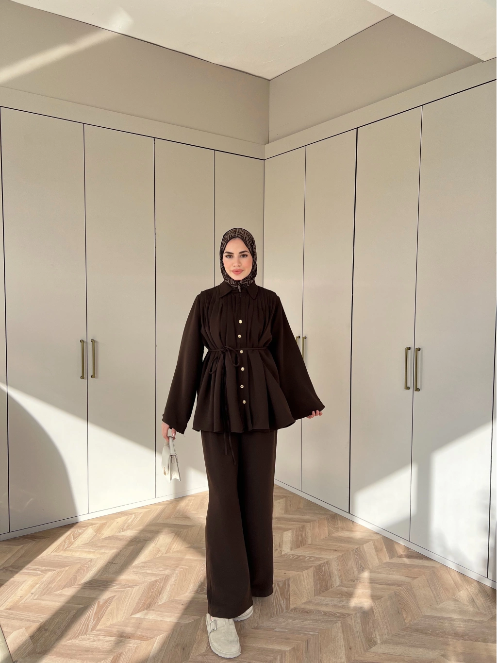 Oya Düğmeli Takım - Kahve