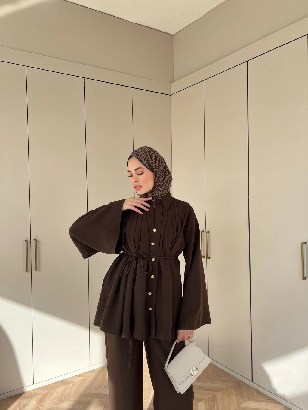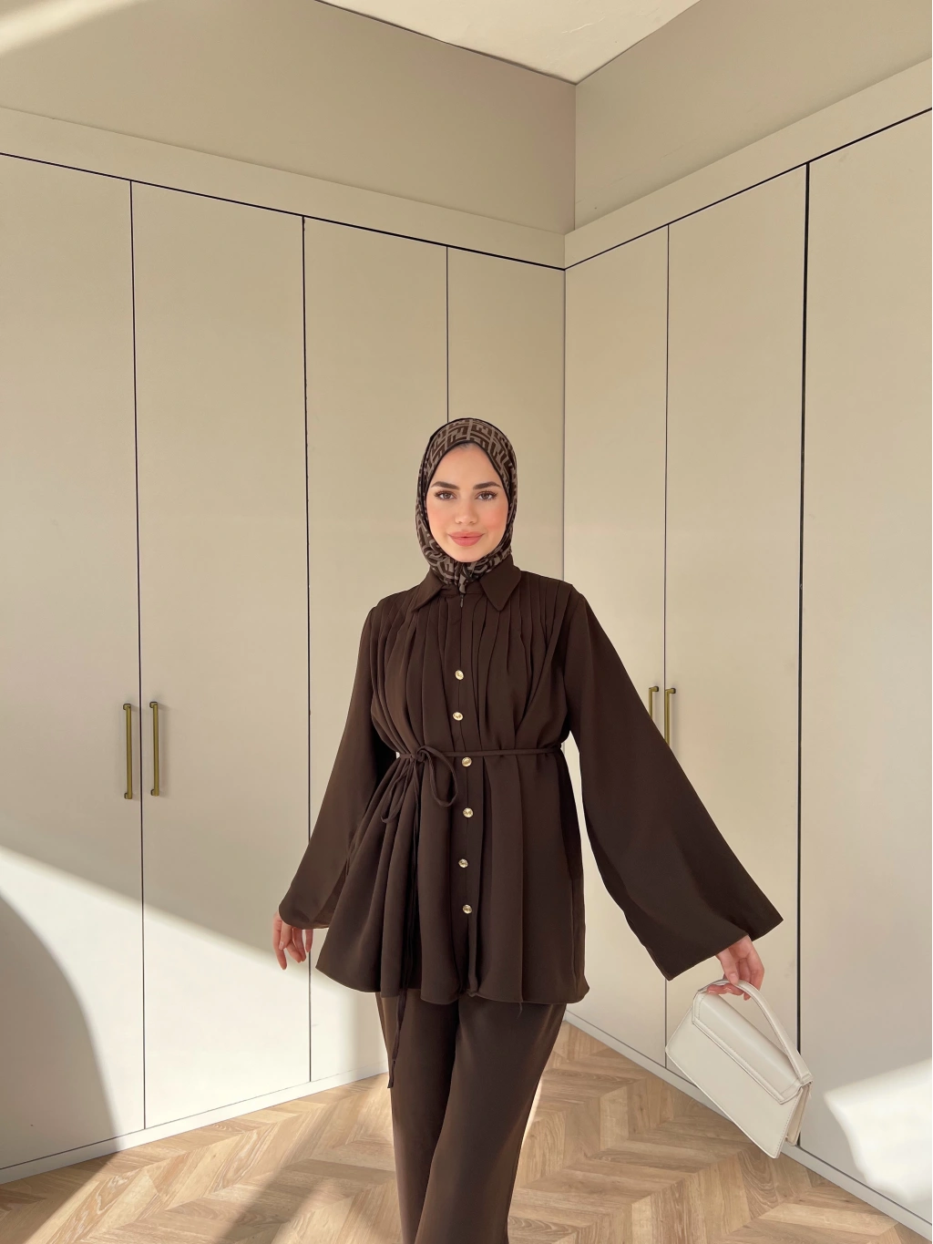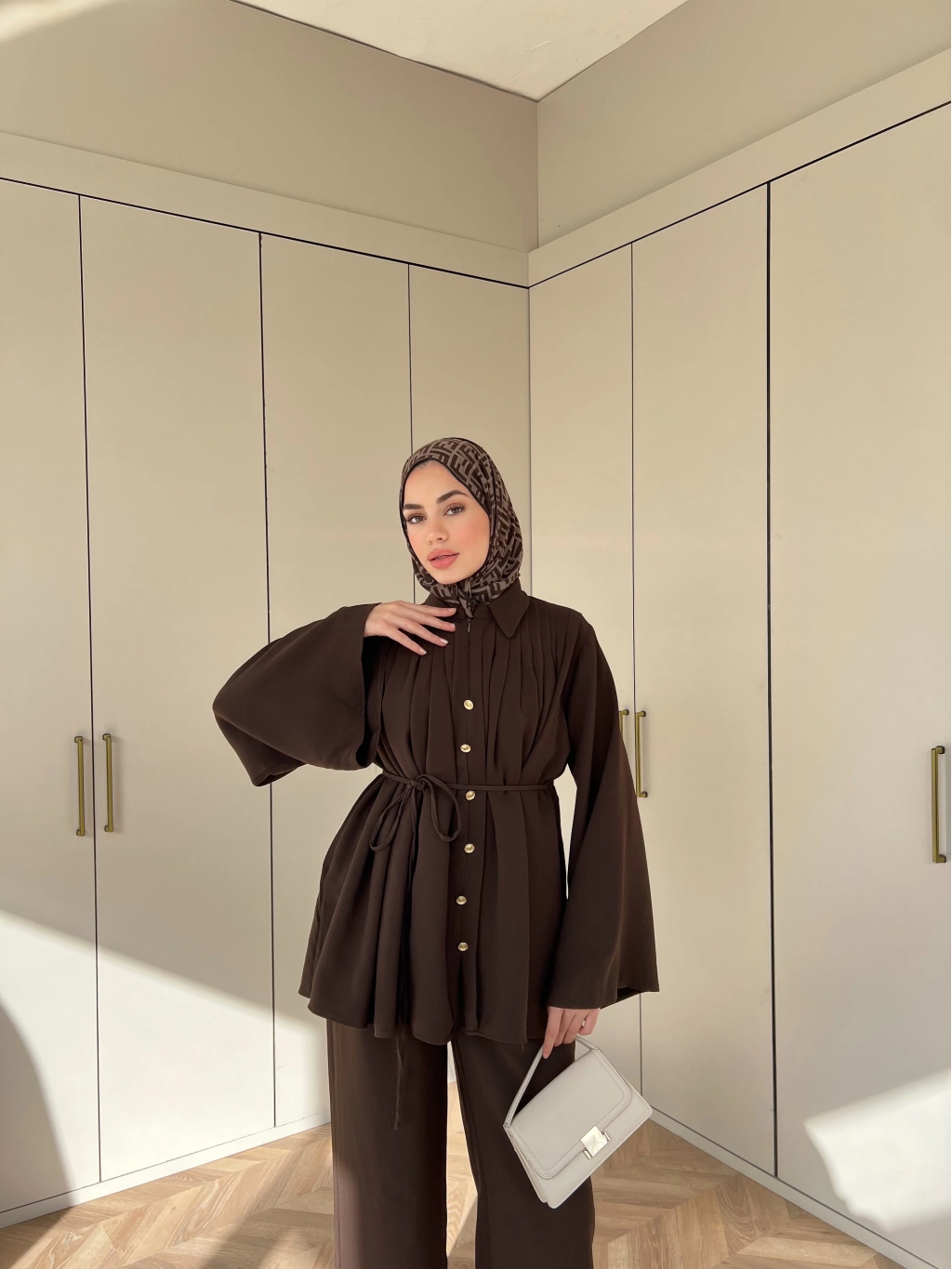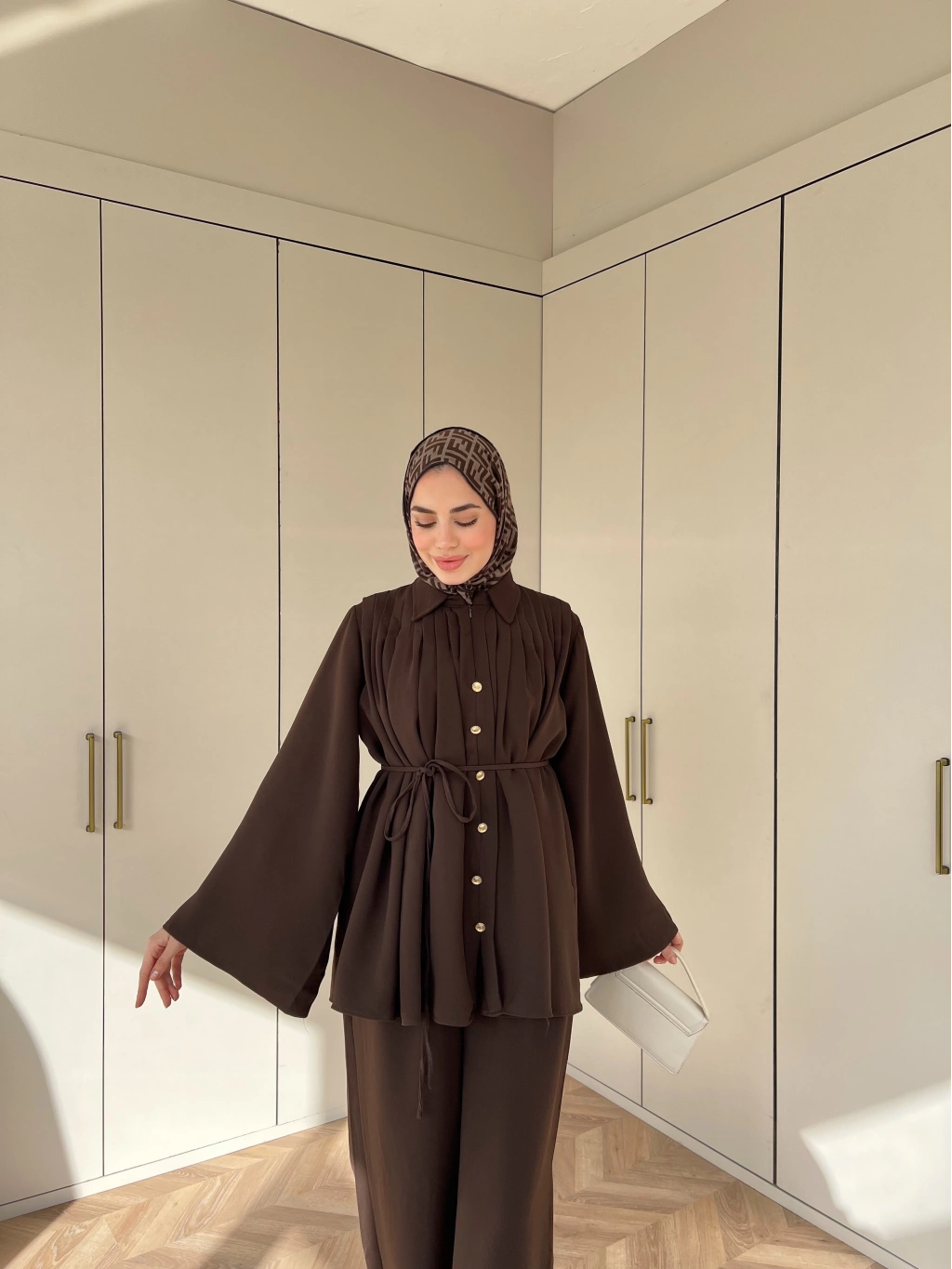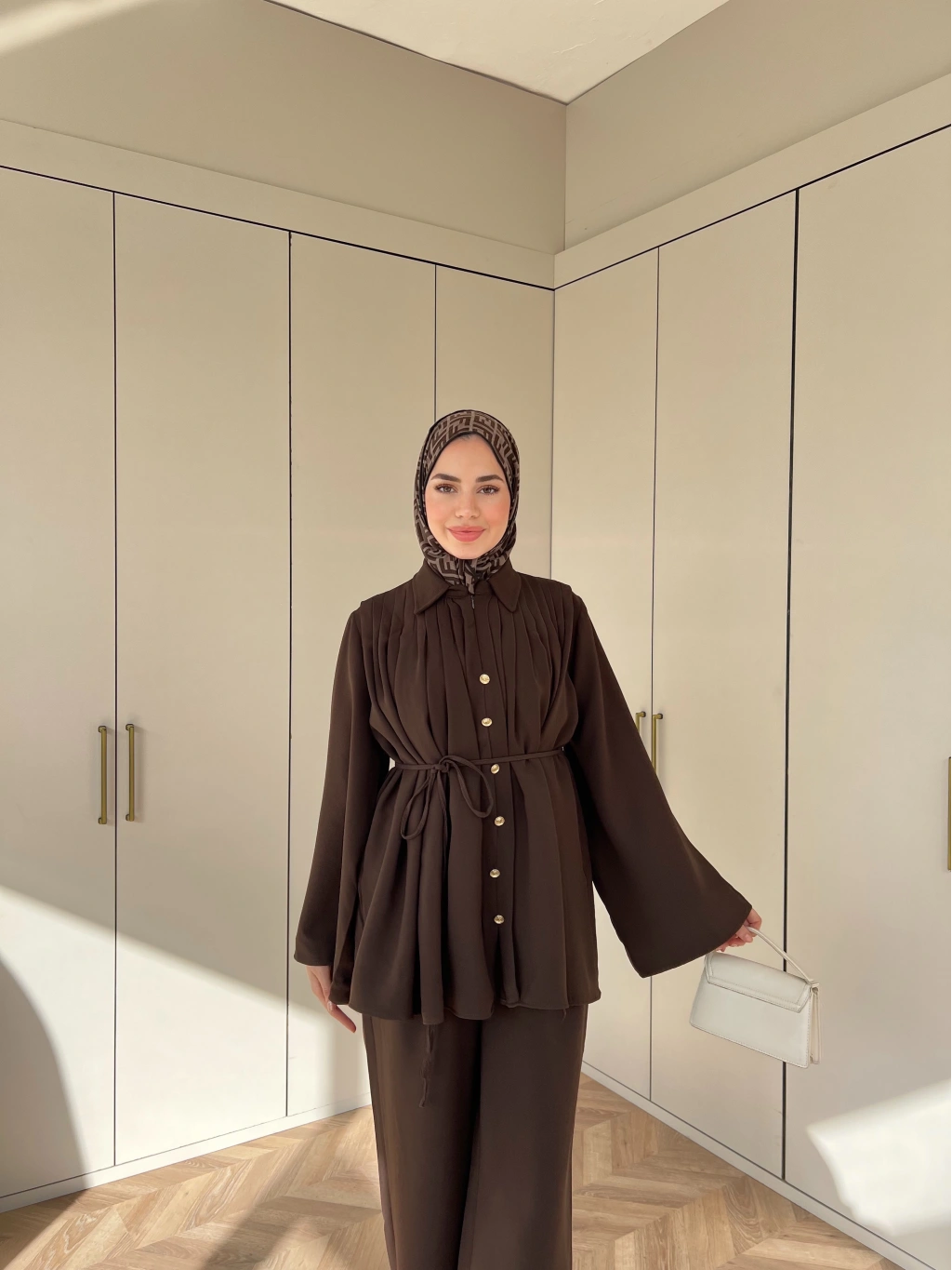 Oya Düğmeli Takım - Kahve