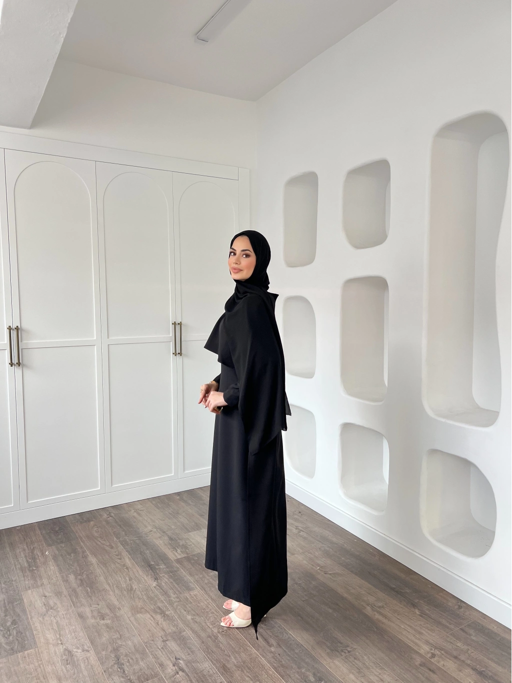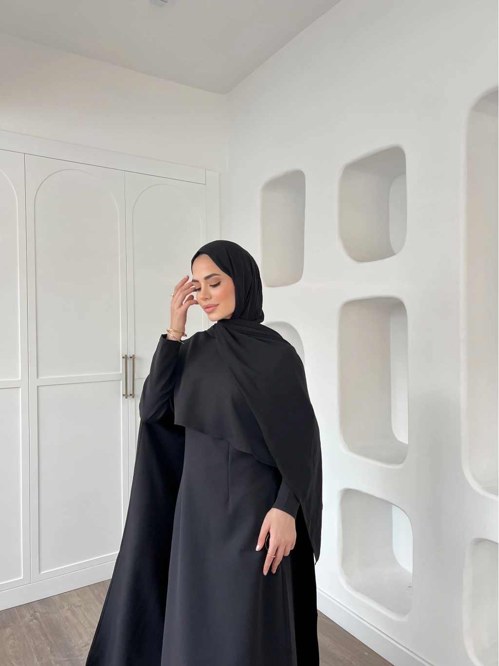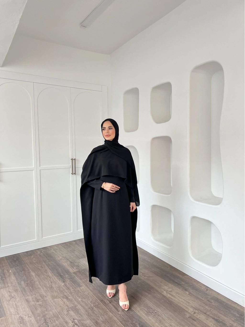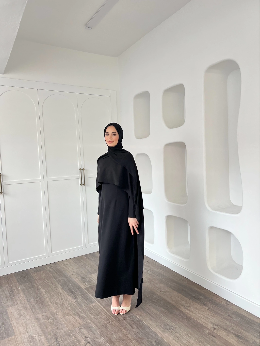 Pelerinli Özge Elbise - Siyah