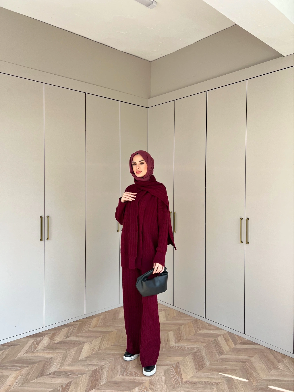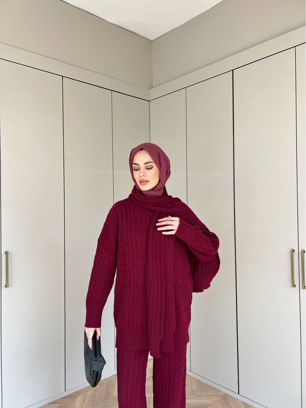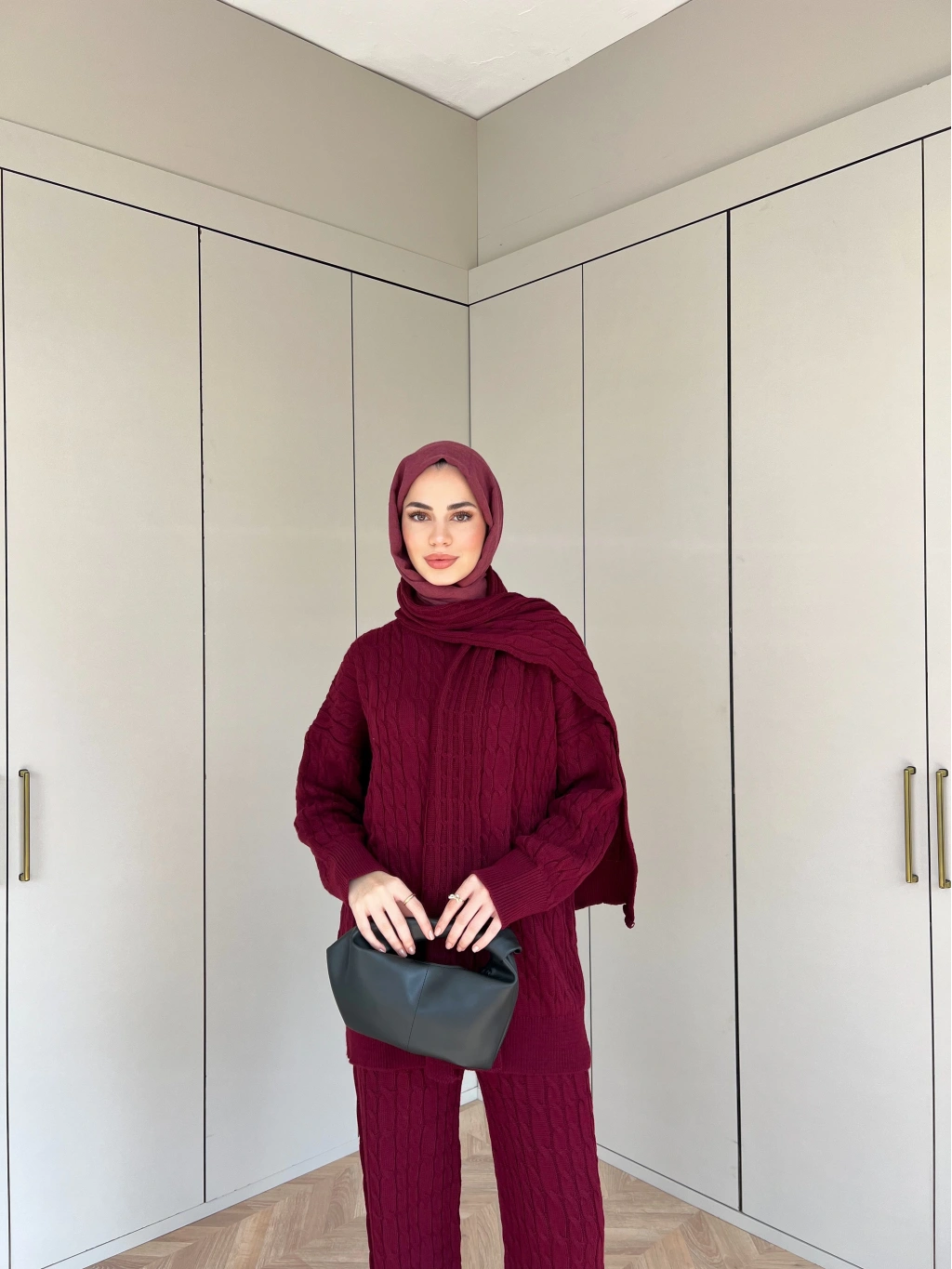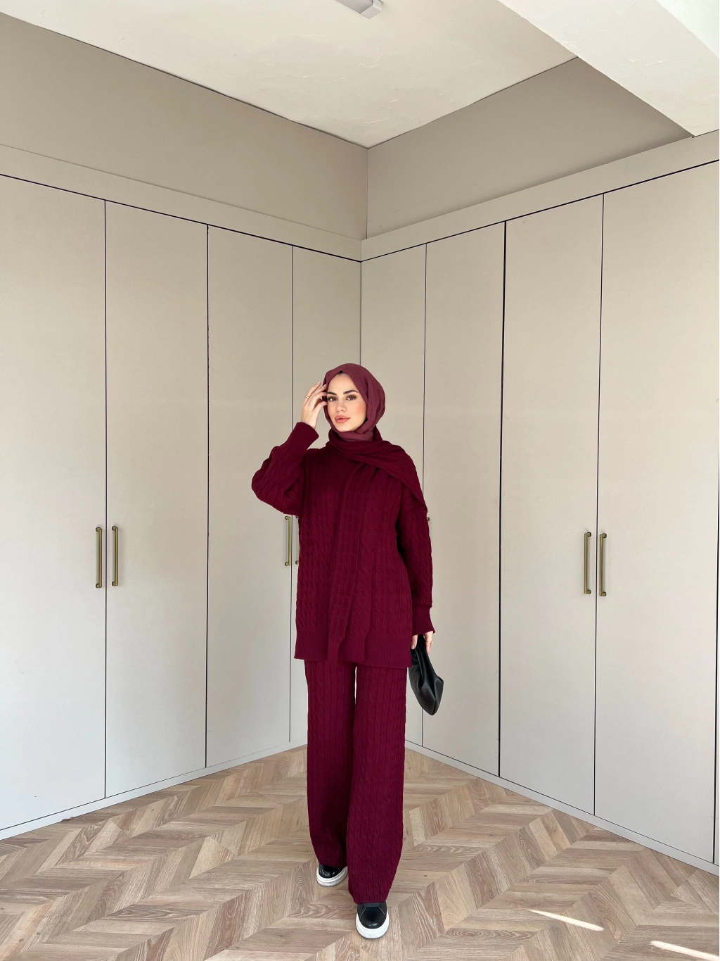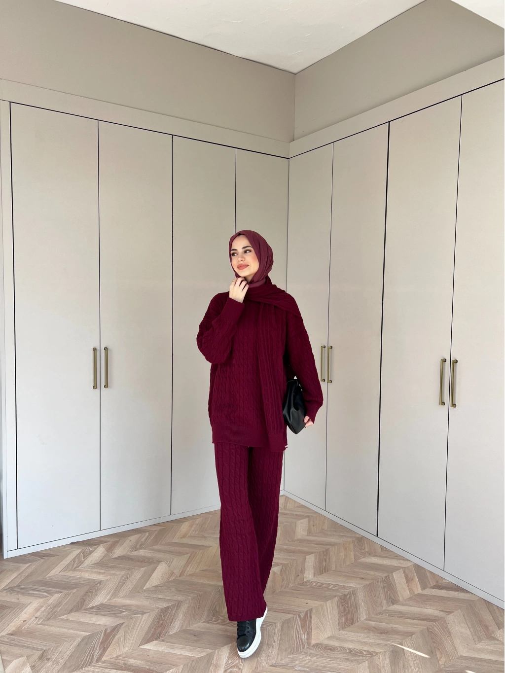 Lale Atkılı Triko Takım - Bordo