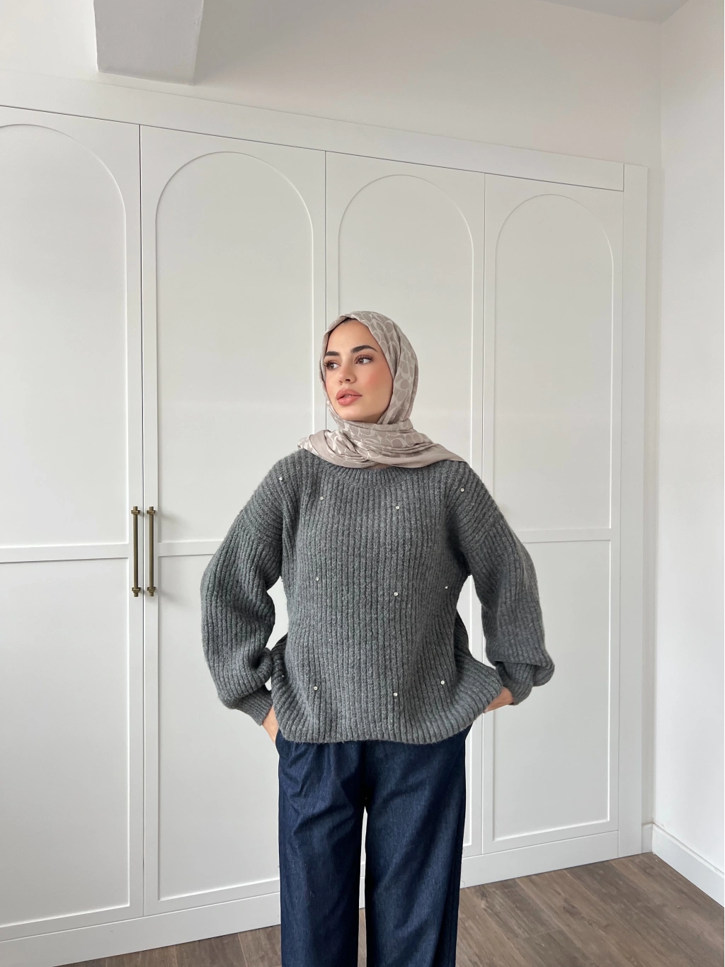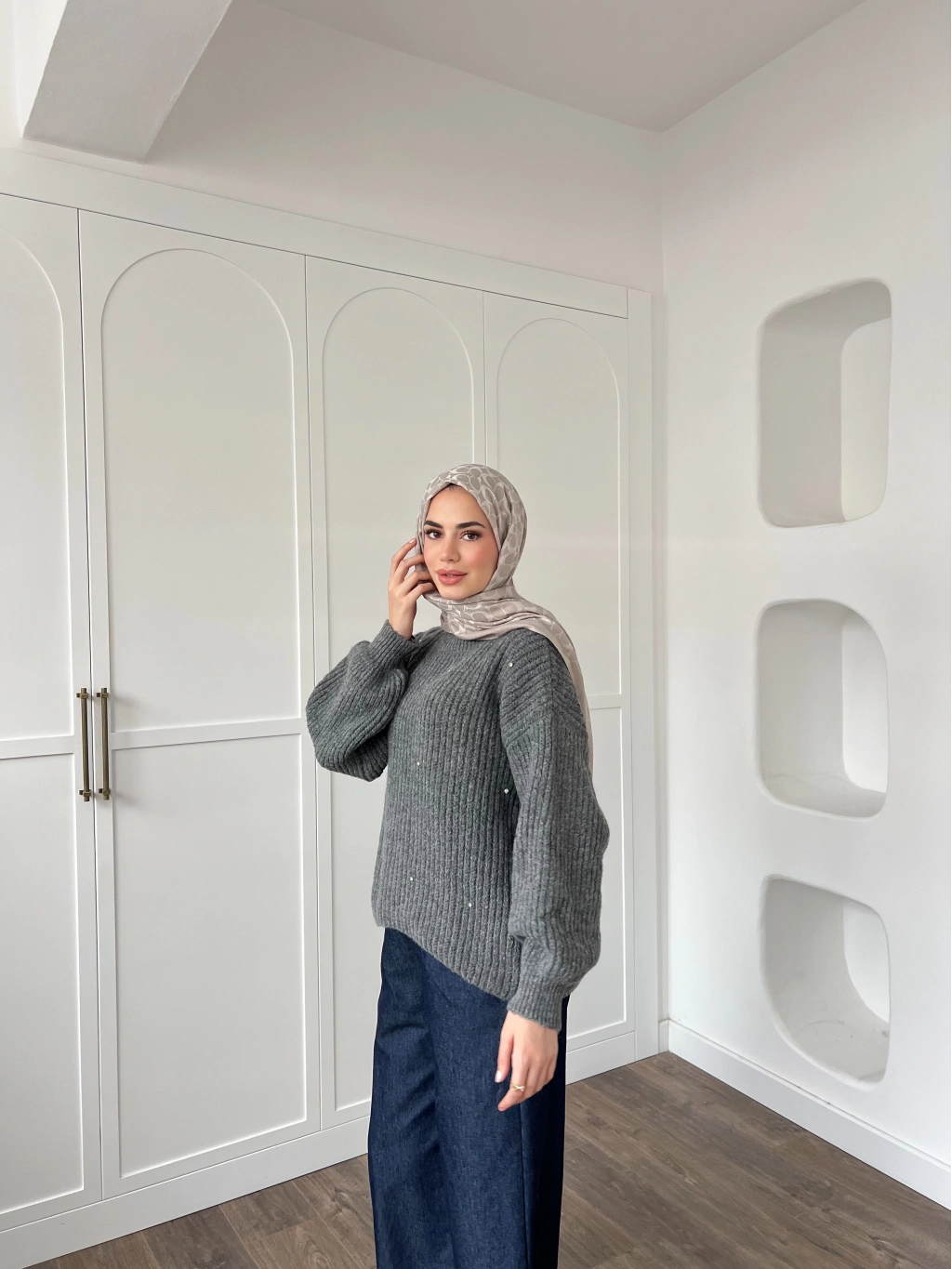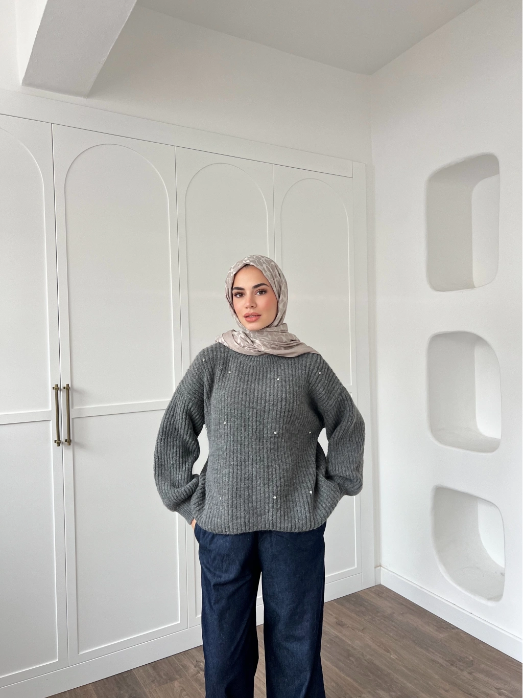 Gömlek Detaylı 3 İplik Sweat - Krem