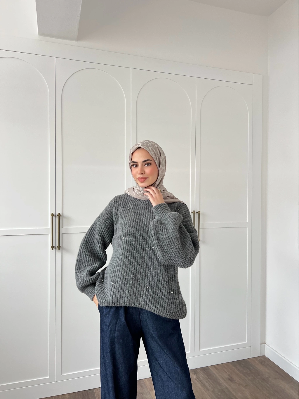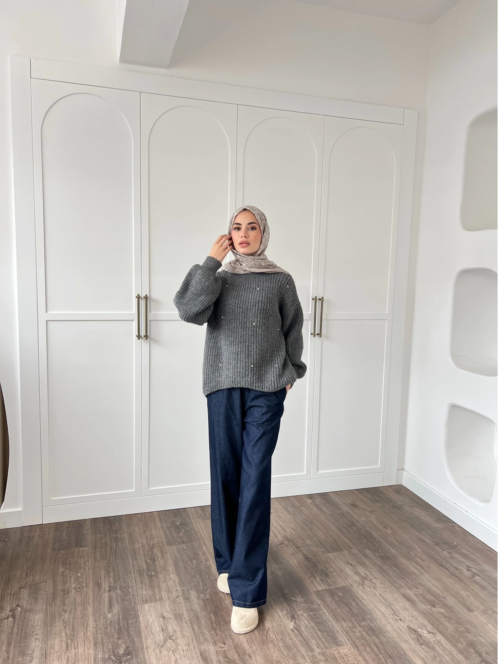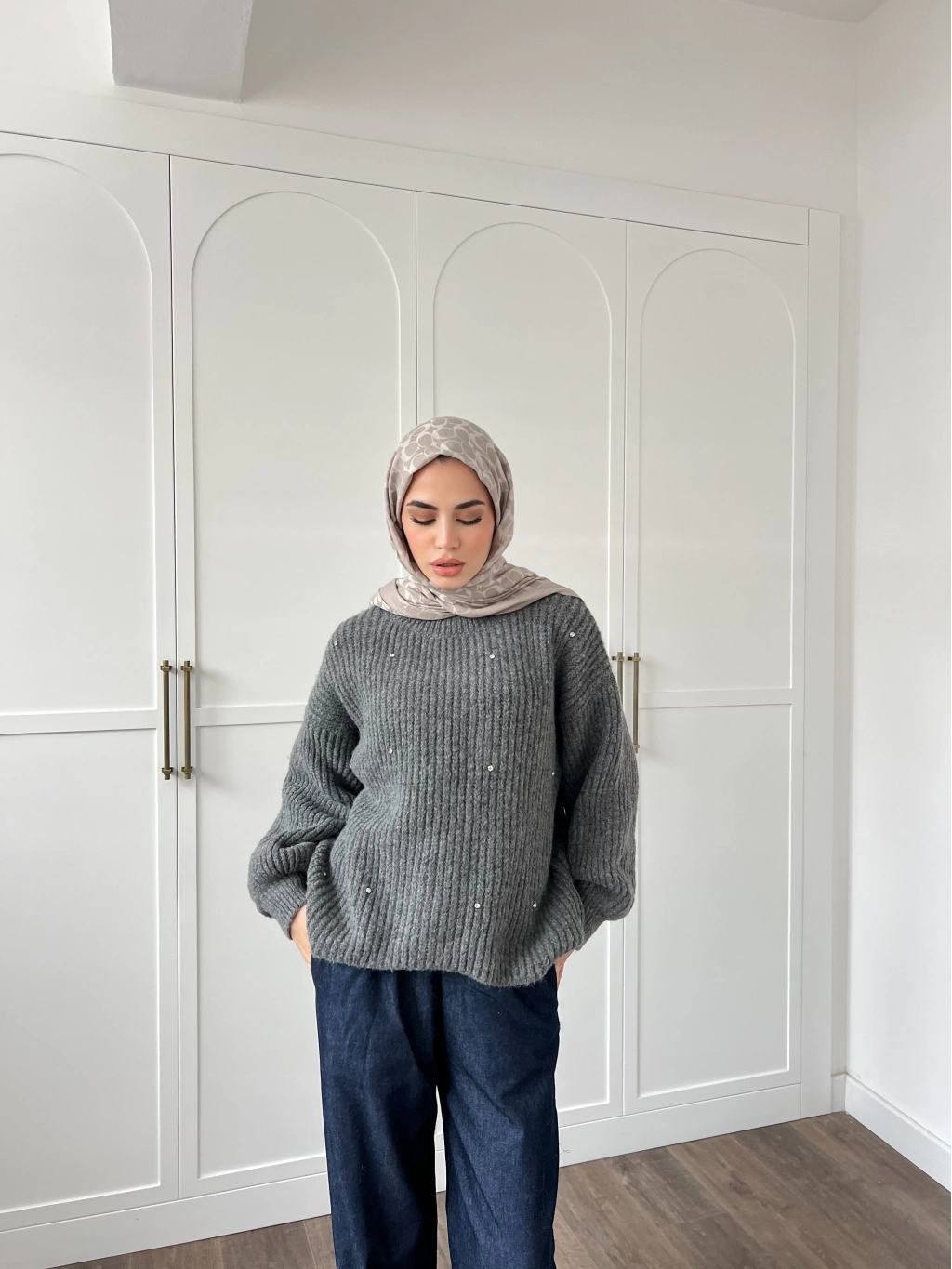 Gömlek Detaylı 3 İplik Sweat - Krem