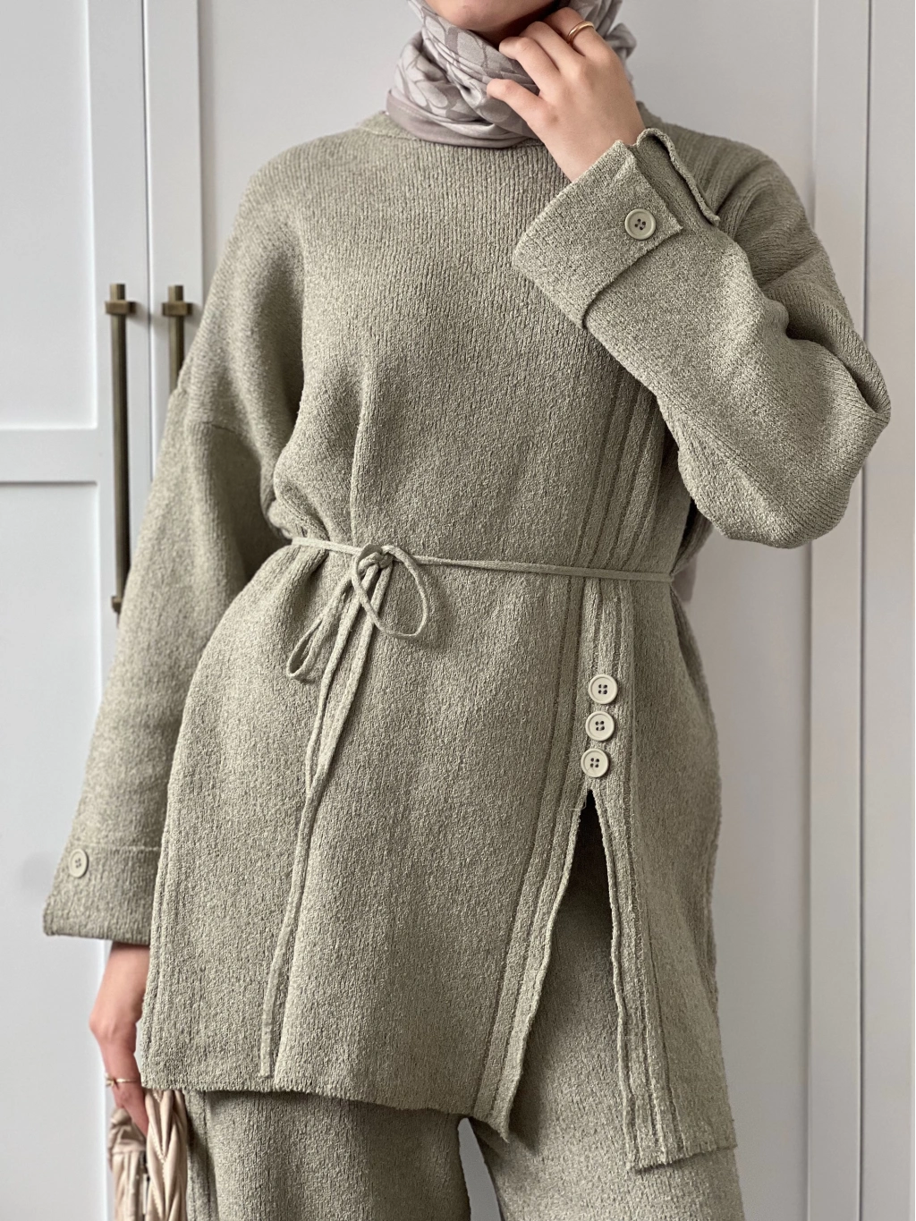 Gömlek Detaylı 3 İplik Sweat - Krem