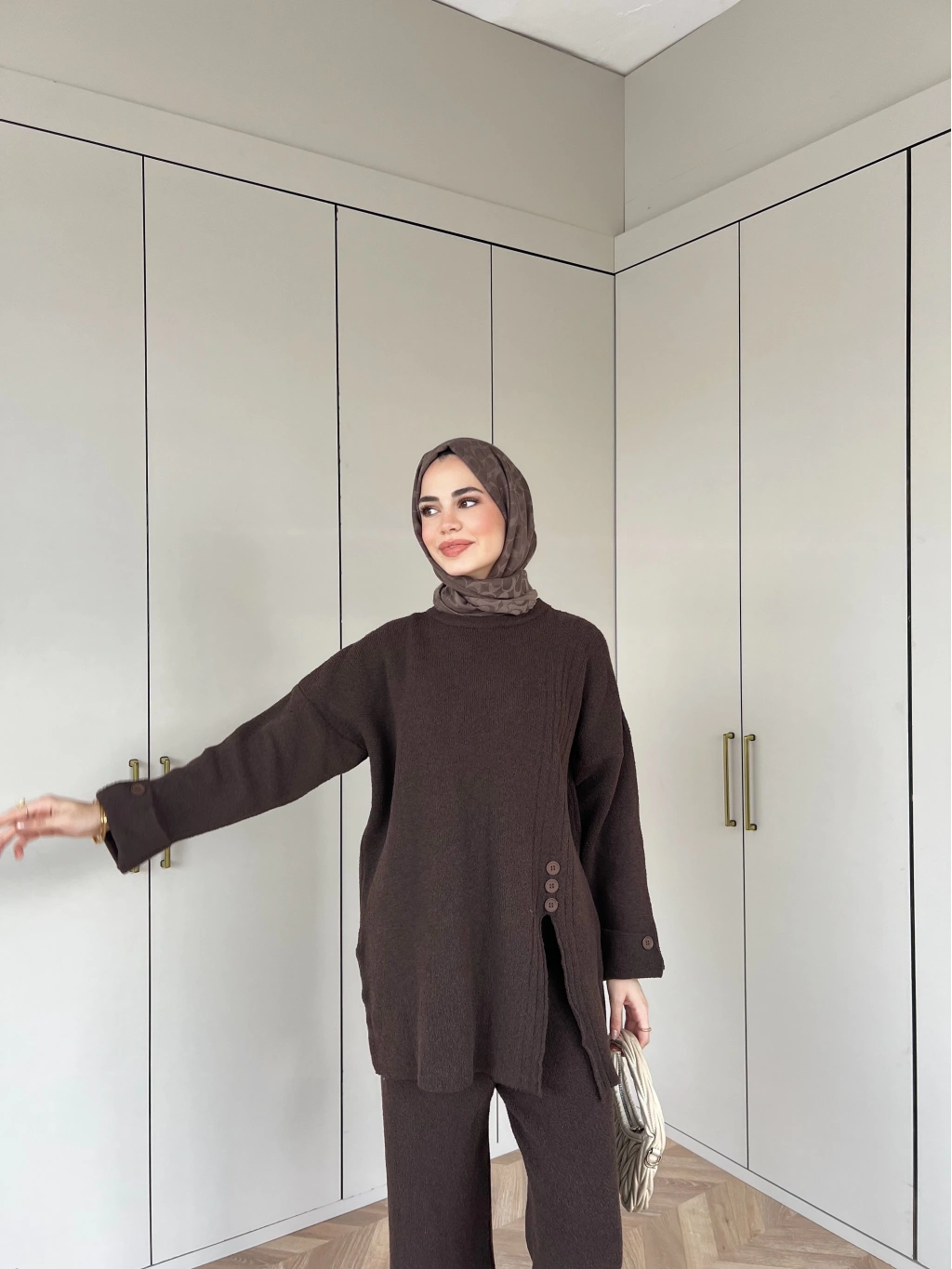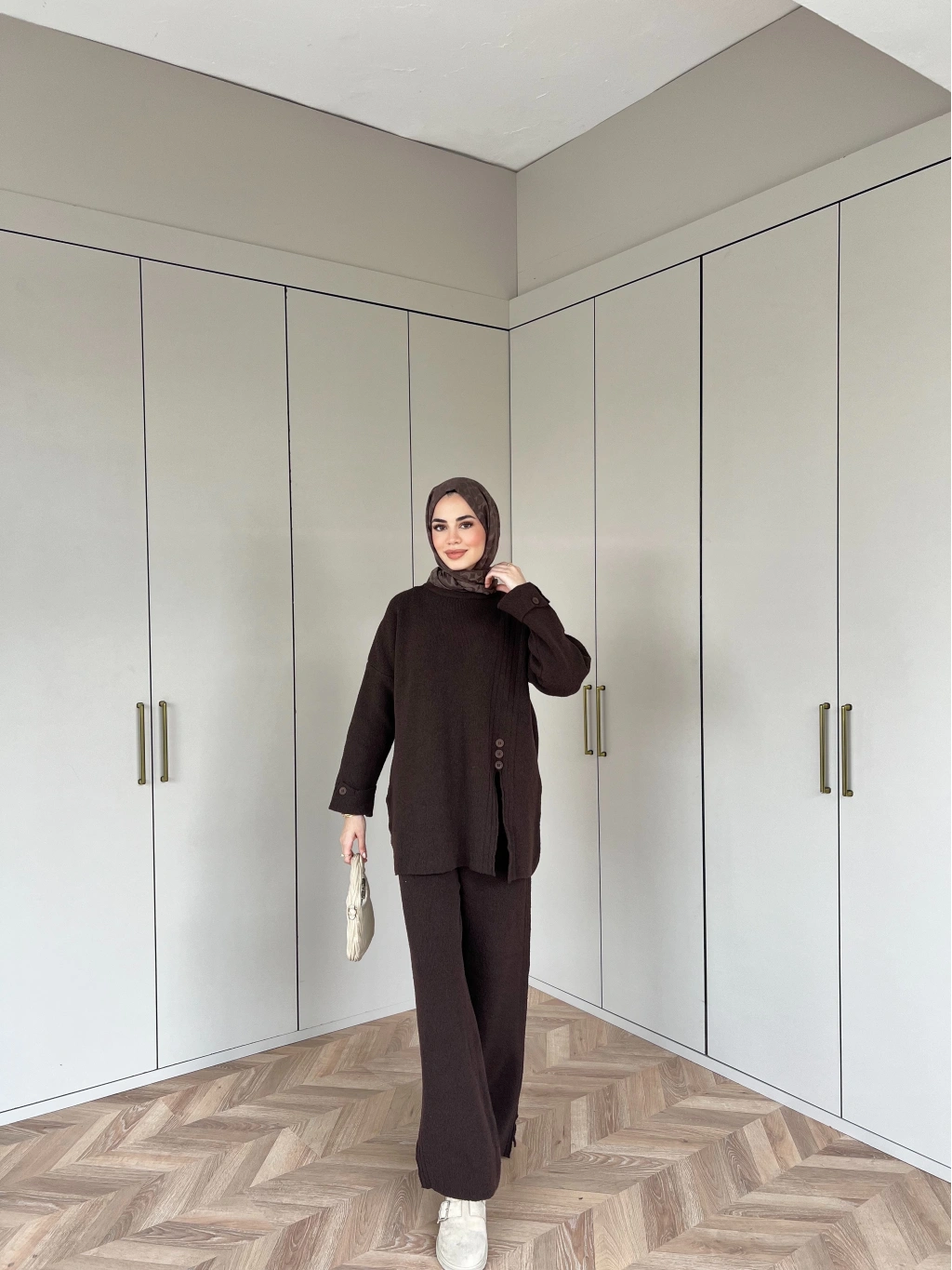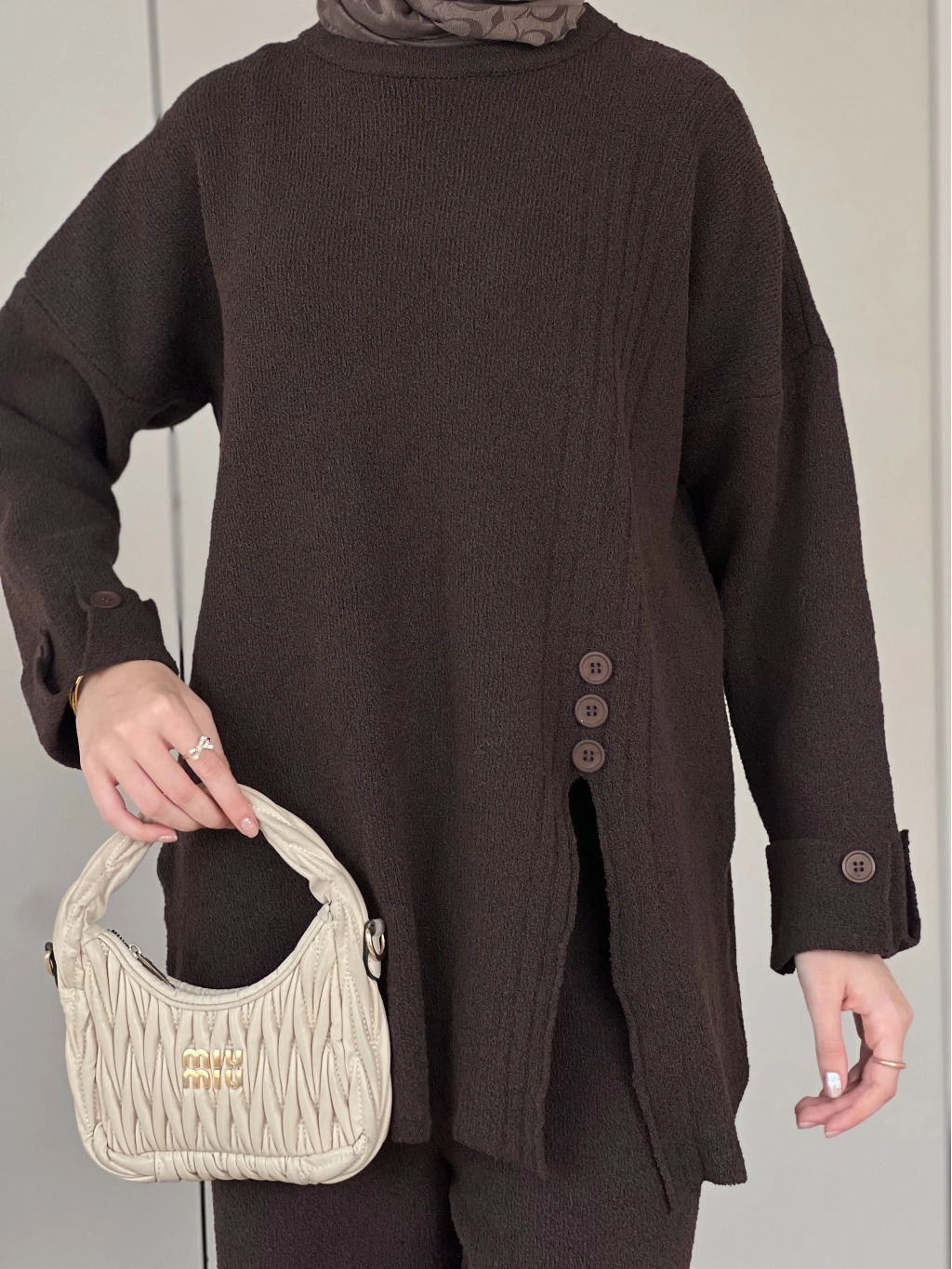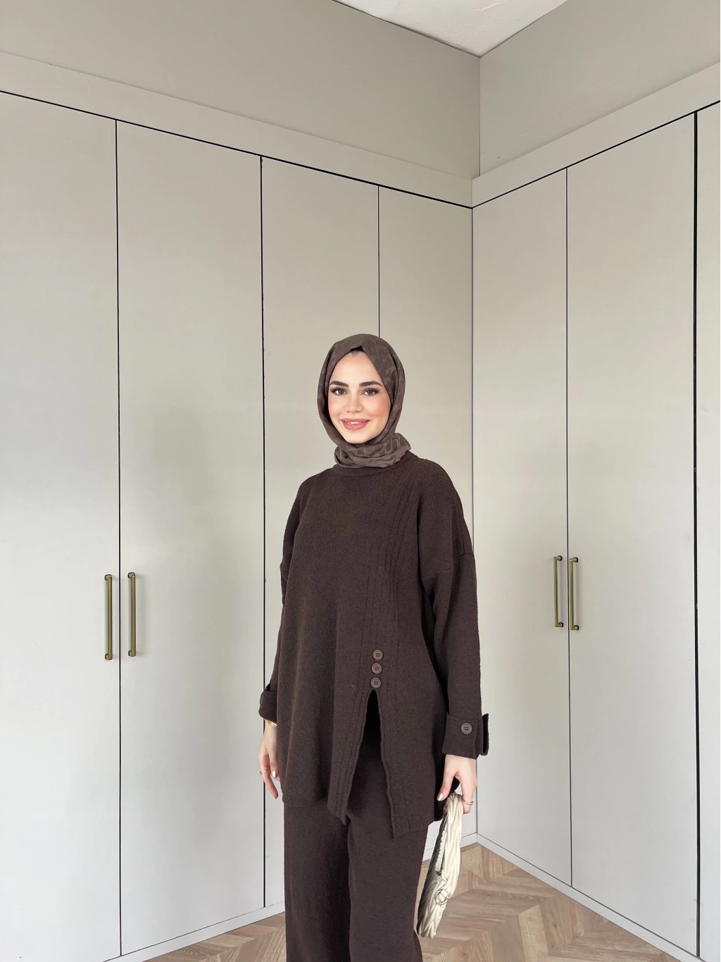 Vadi Düğmeli Takım - Kahve