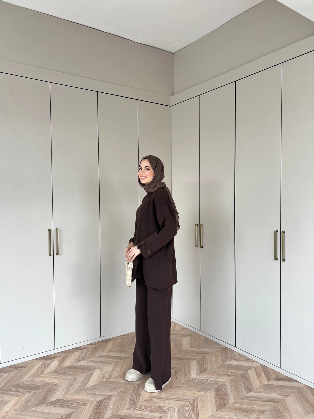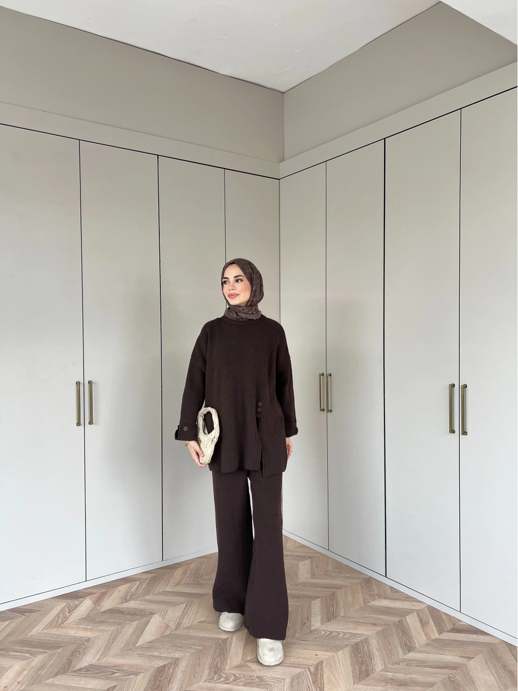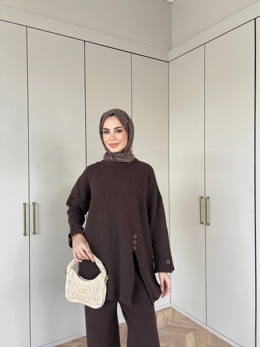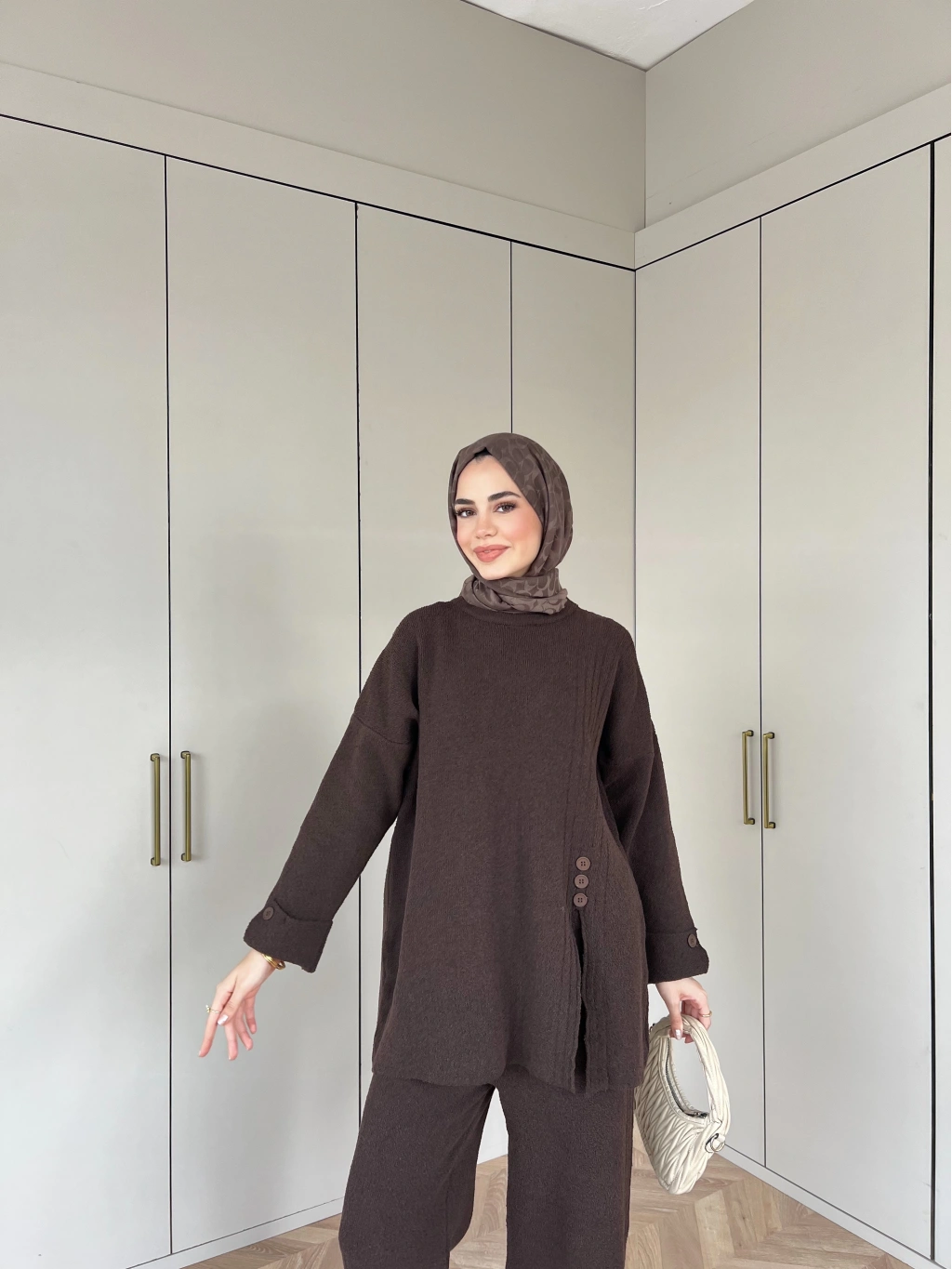 Vadi Düğmeli Takım - Kahve